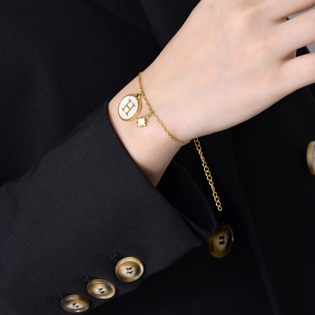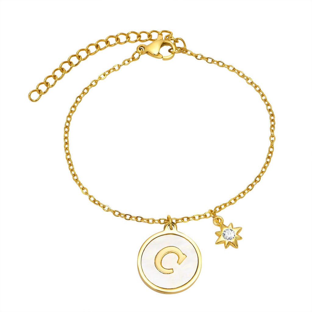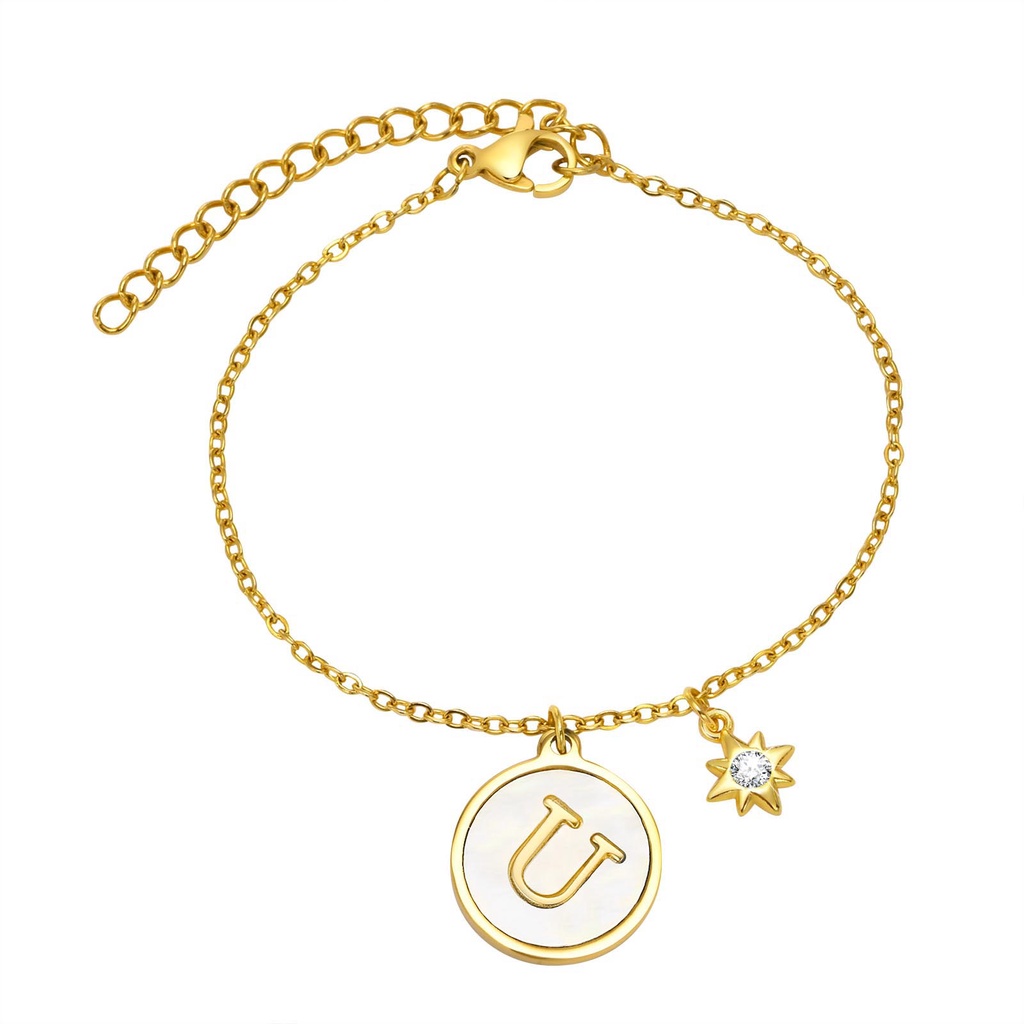 Vnox A-Z Initials สร้อยข้อมือ ประดับพลอย CZ จี้เปลือกหอย สีทอง เครื่องประดับหรูหรา สําหรับผู้หญิง