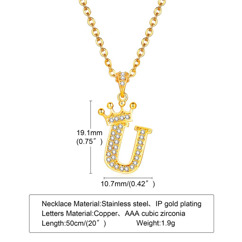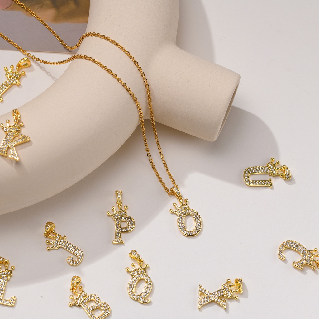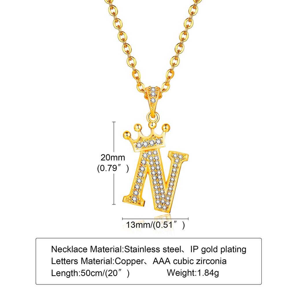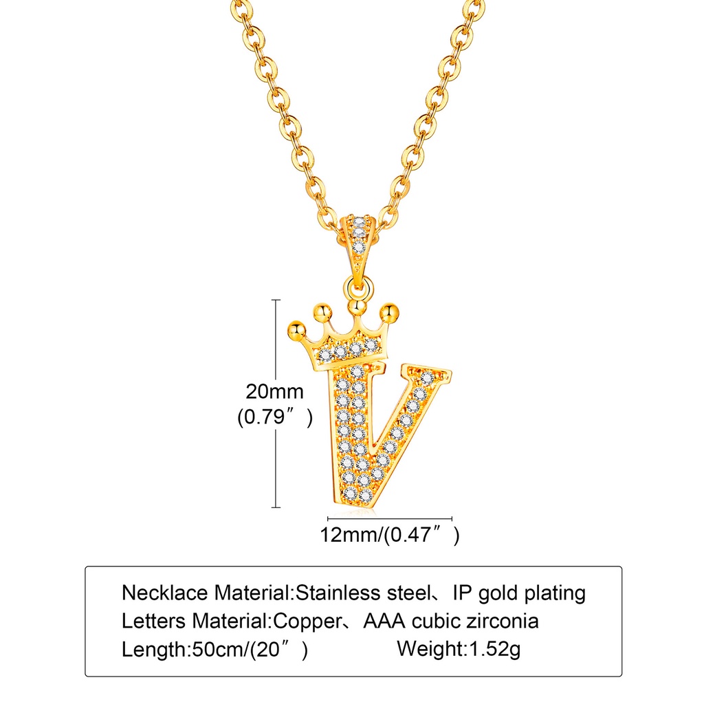 Vnox สร้อยคอทองแดง จี้มงกุฎตัวอักษร Vnox A-Z Cz สีทอง เหมาะกับของขวัญ สไตล์สตรีท สําหรับผู้หญิง