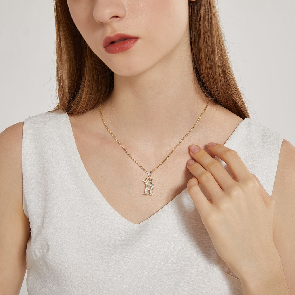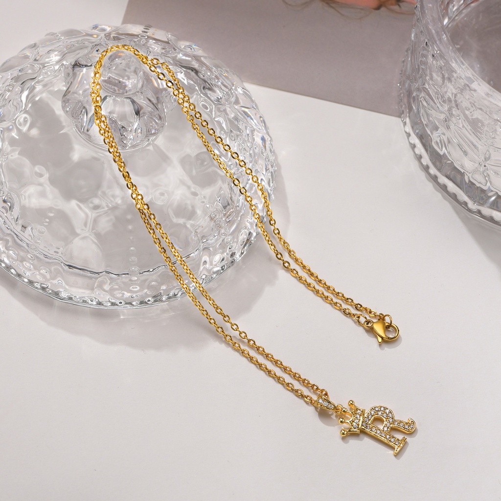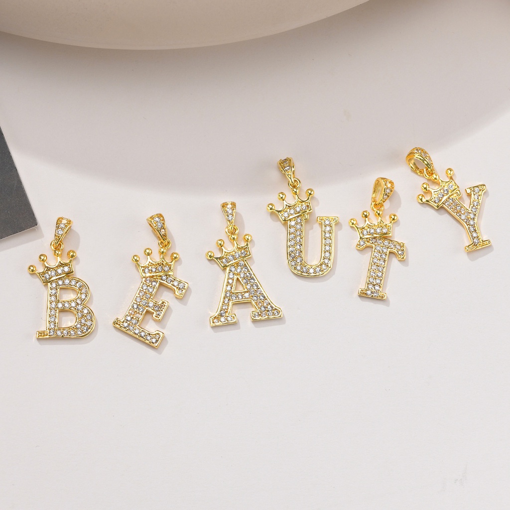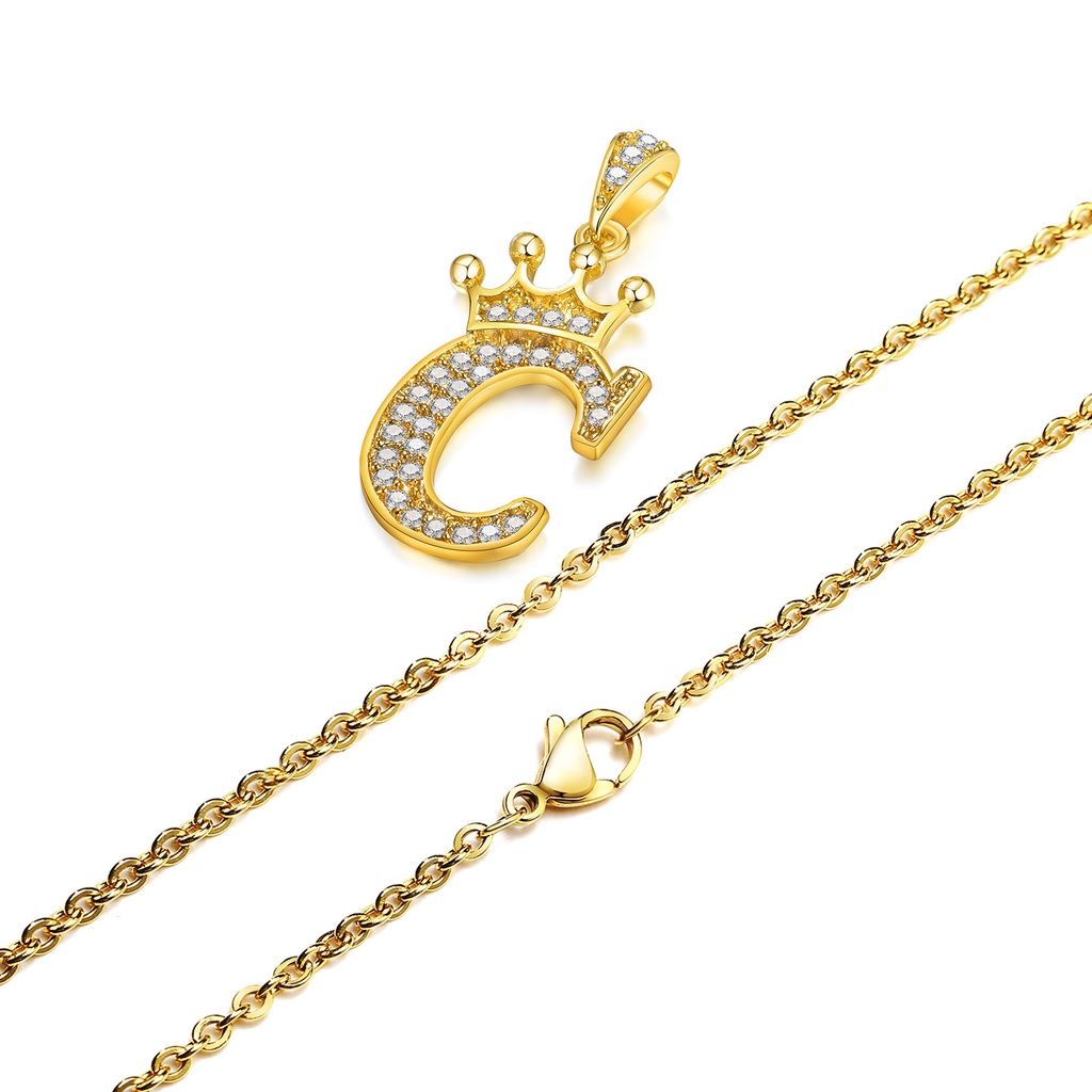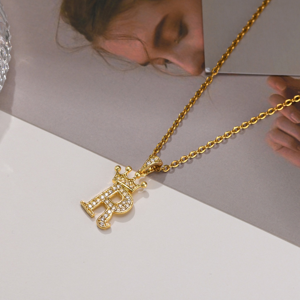 Vnox สร้อยคอทองแดง จี้มงกุฎตัวอักษร Vnox A-Z Cz สีทอง เหมาะกับของขวัญ สไตล์สตรีท สําหรับผู้หญิง