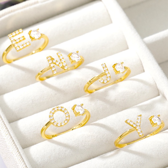 Vnox A-Z แหวนเพทาย รูปตัวอักษร ประดับคริส ตัล สีทอง ปรับได้ สําหรับผู้หญิง