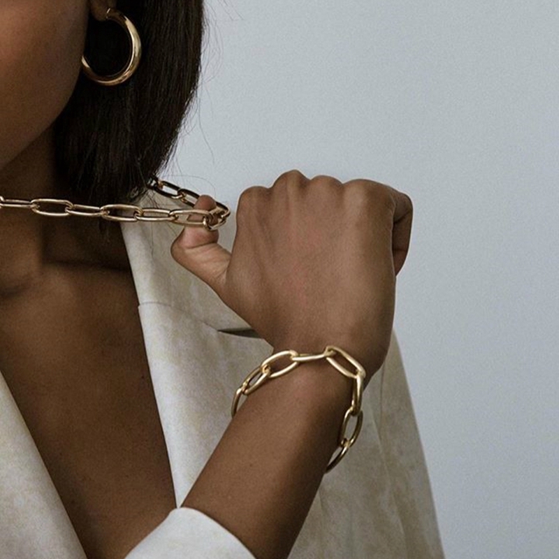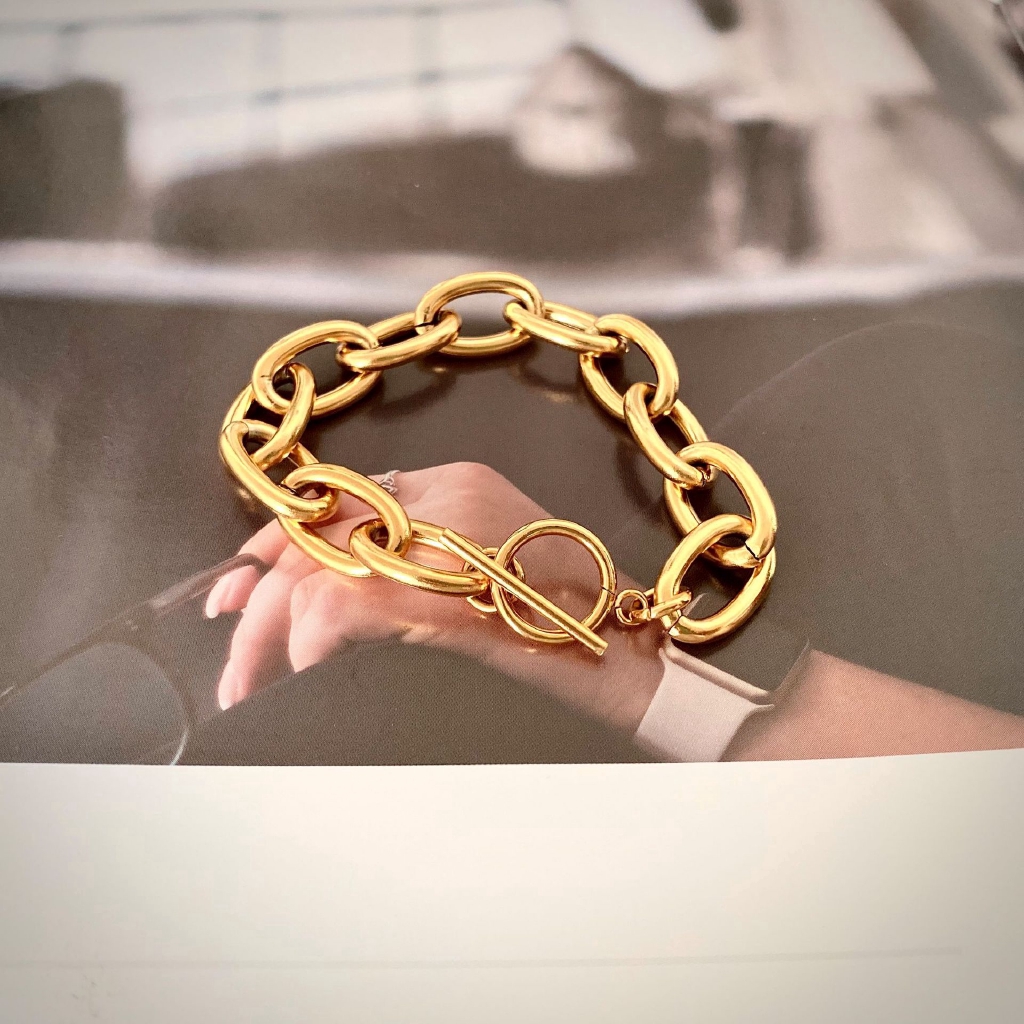 Vnox สร้อยข้อมือ แบบโซ่ สเตนเลส สีทอง สำหรับผู้หญิง