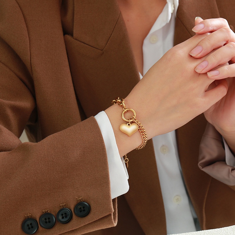 Vnox สร้อยข้อมือสแตนเลสรูปหัวใจสําหรับผู้หญิง