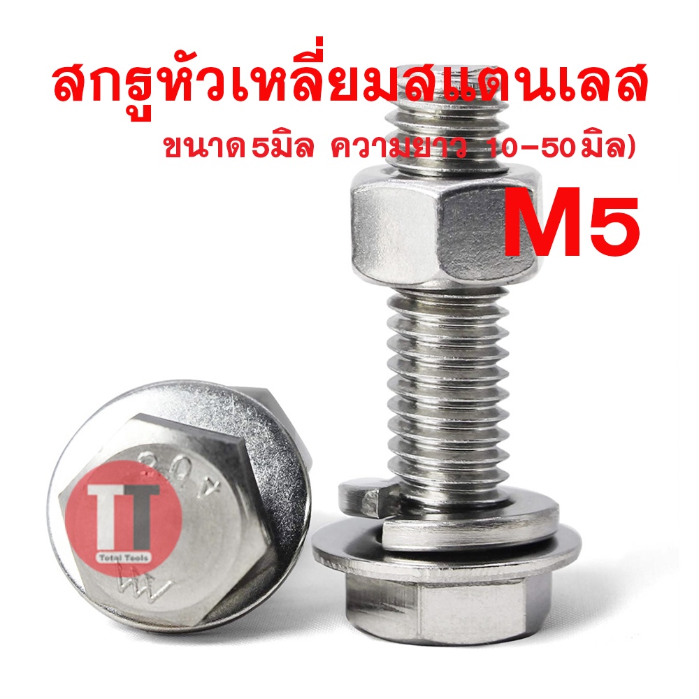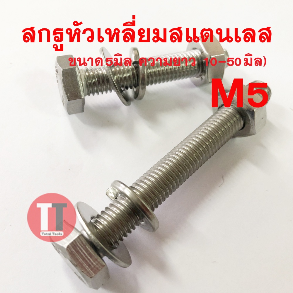 สกรูหัวเหลี่ยมสแตนเลส5มิล เกลียว0.8 ประแจเบอร์ 8 (ยาว10-50มิล)**สกรู,แหวนอีแปะ,แหวนสปริง