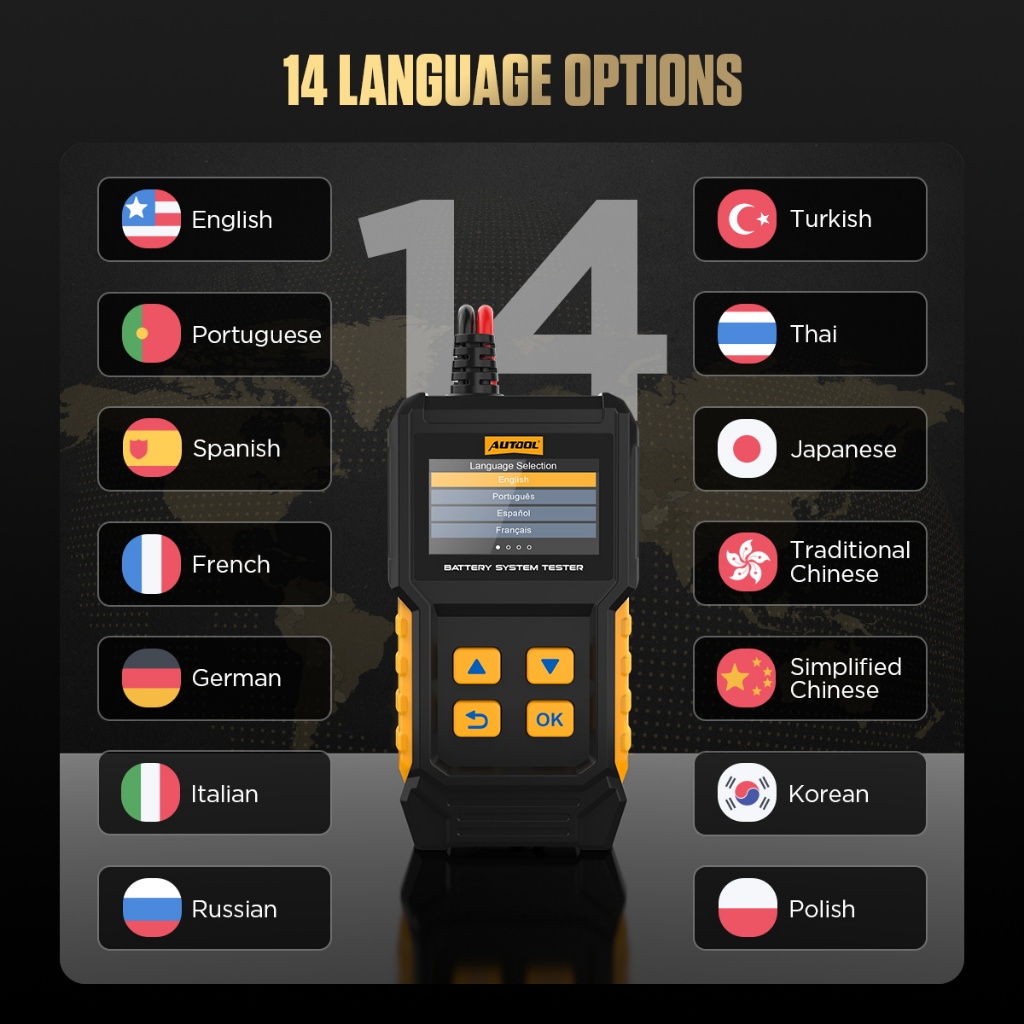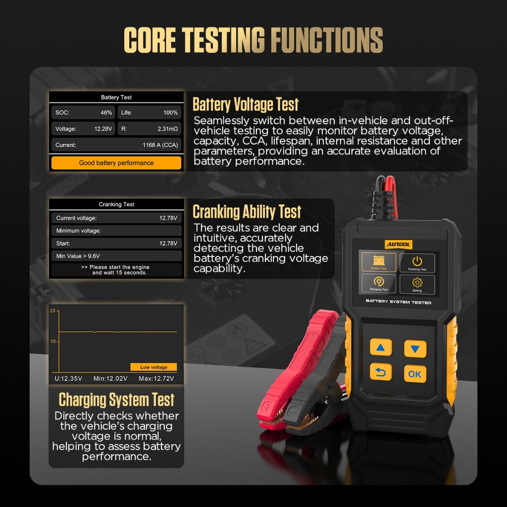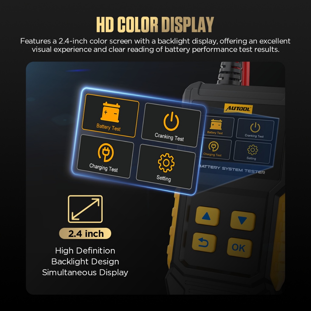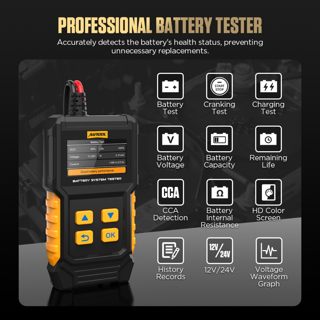 AUTOOL BT360 12V เครื่องทดสอบแบตเตอรี่รถยนต์ CCA 20-2000 การวินิจฉัยยานยนต์แบบดิจิตอลเครื่องมือส แกนการชาร์จ