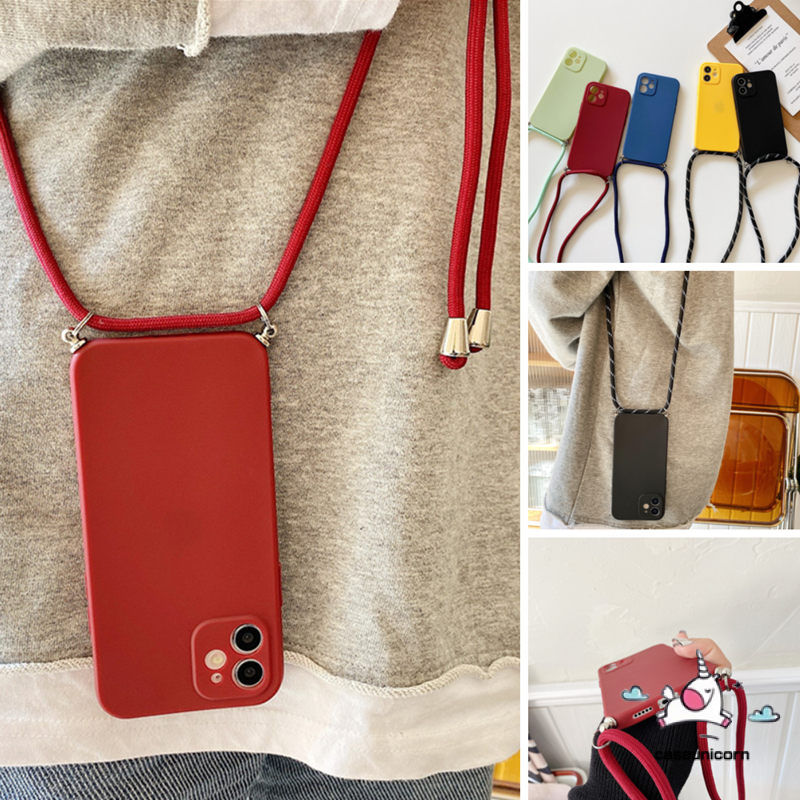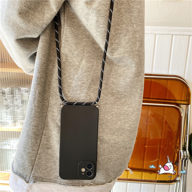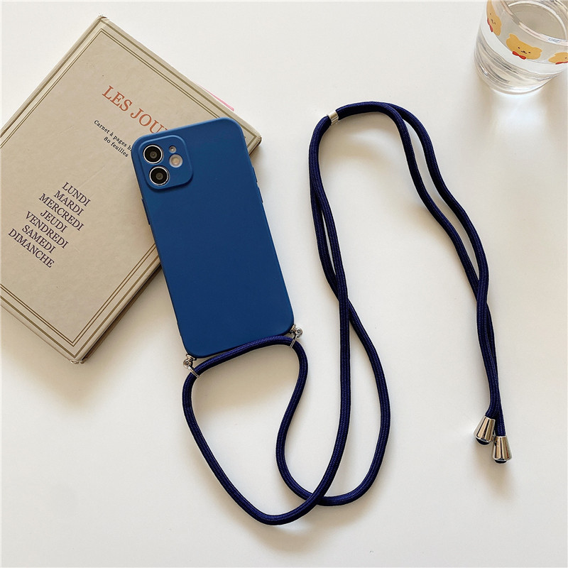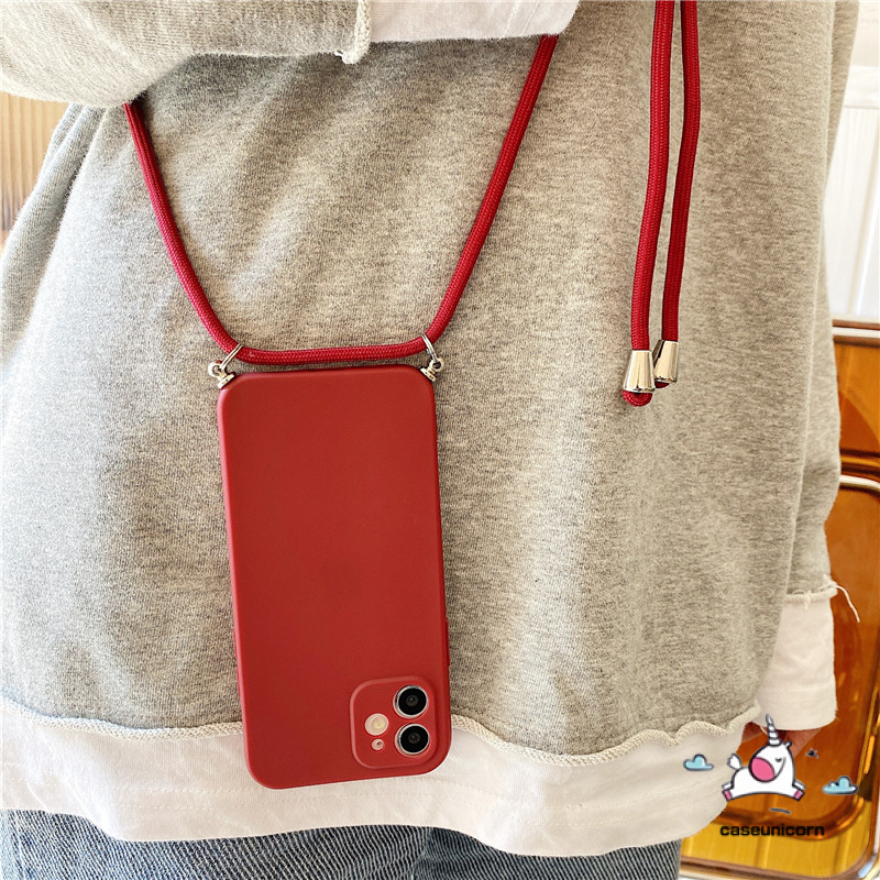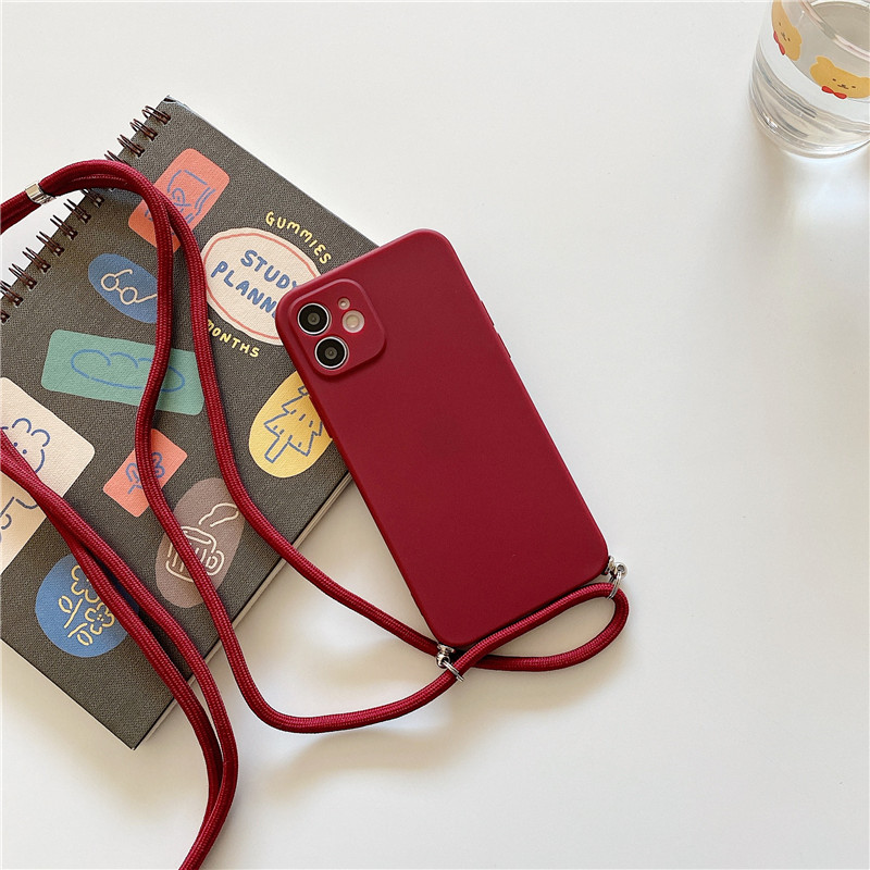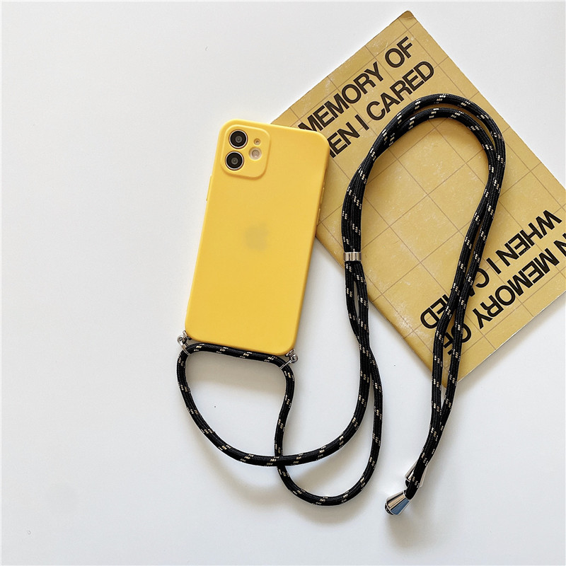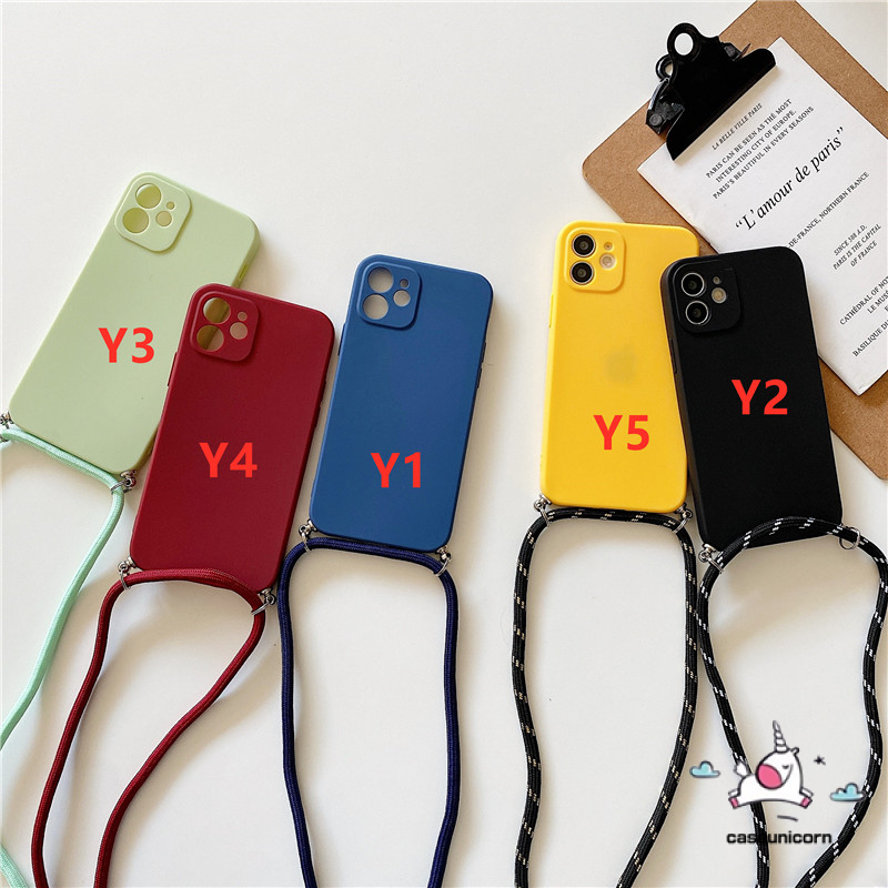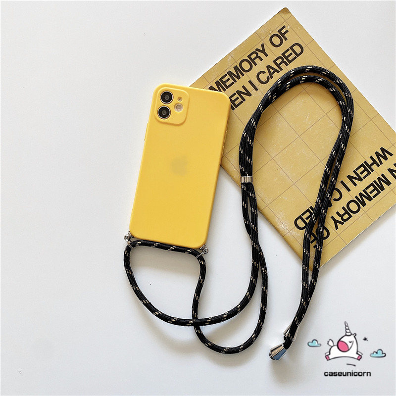 เคสโทรศัพท์มือถือ สีพื้น สดใส มีสายคล้อง สำหรับ Iphone 11 12 6 6 S 7 8 Plus 12 Pro Max Se 2020 X 12