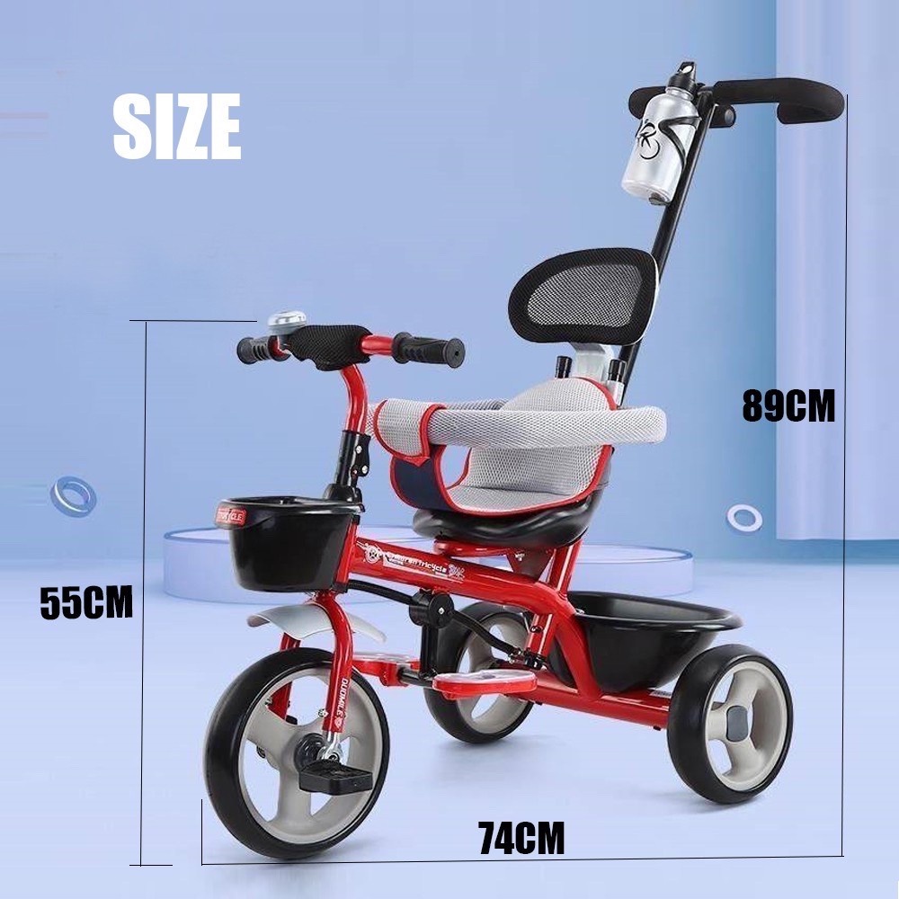 🔥ถูกสุด พร้อมส่ง🔥 รถจักรยาน 3 ล้อ จักรยานสามล้อ จักรยานเด็ก รถเข็นเด็กสามล้อ มีด้ามเข็น มีตะกร้าหน้า-หลัง