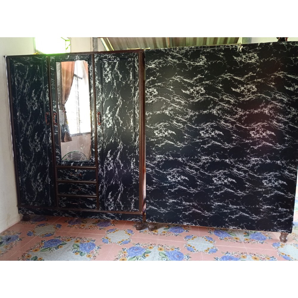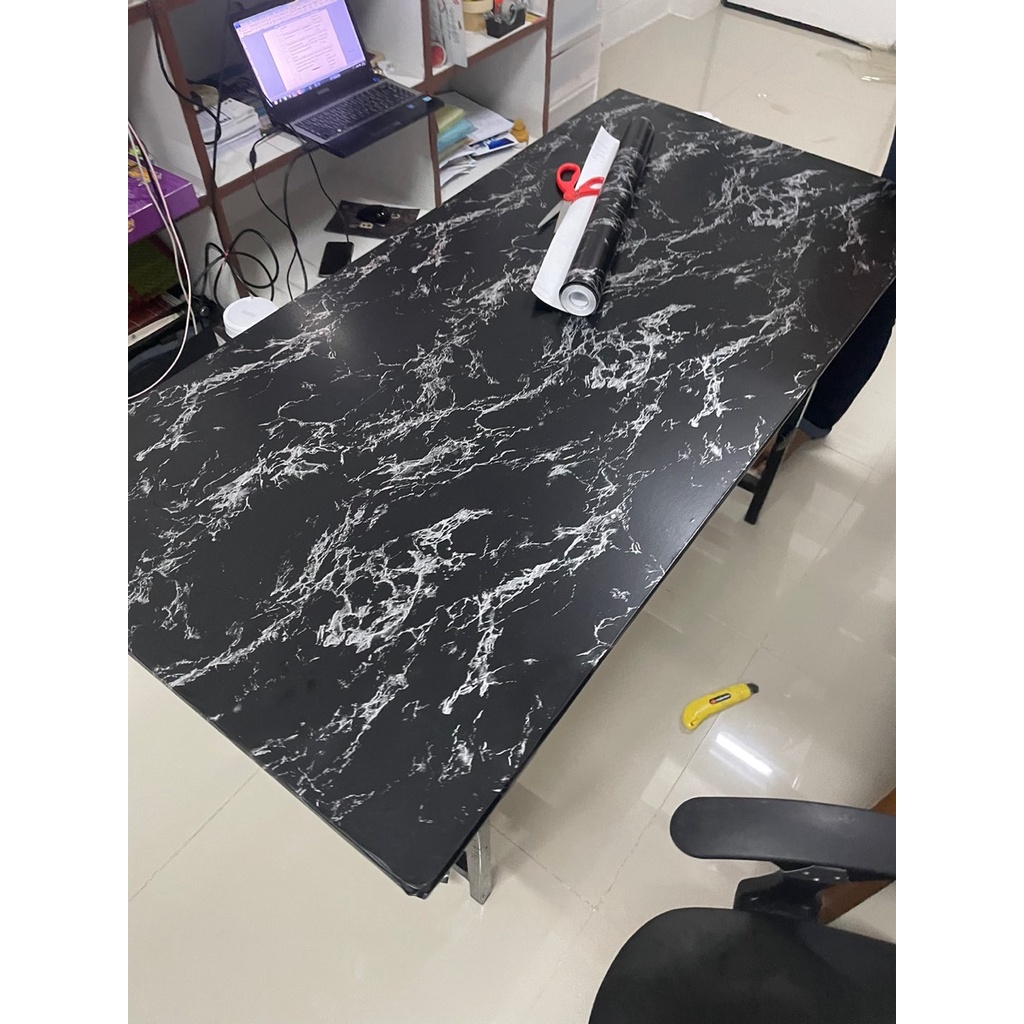 🔥ถูกสุด มีส่งด่วน 🚚💨🔥 วอลเปเปอร์หินอ่อน 45 ซม.x10 เมตร สติ๊กเกอร์ PVC ลายหินอ่อนขาว/ดำ มีกาวในตัว