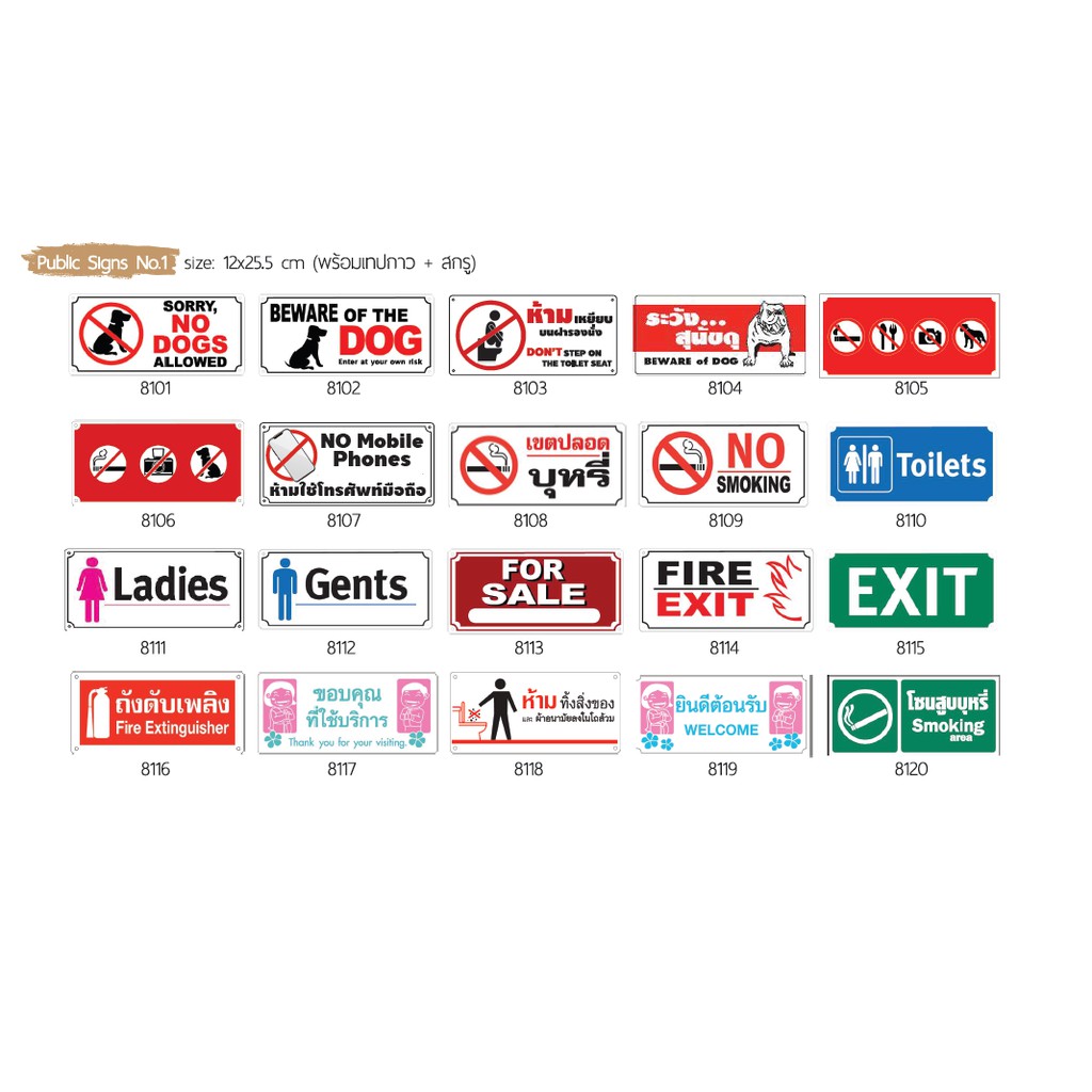 Public sign no.1 แผ่นป้ายสัญลักษณ์ ขนาด 12 x 25.5 ซม. วัสดุเป็นพลาสติกแข็ง เกรด A