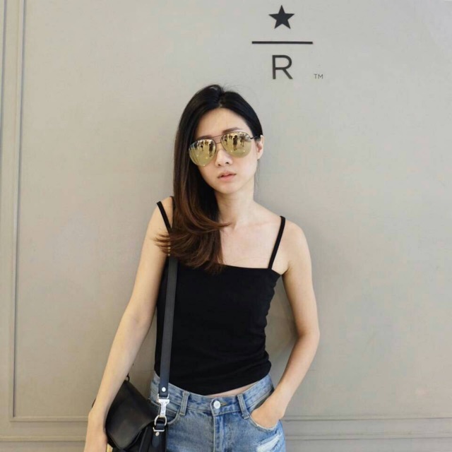 ⚡️F38⚡️สายเดี่ยววินเทจ ทรงเกาะอก/สายเดี่ยว สีพื้น