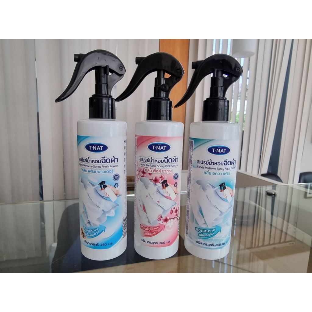 สเปรย์น้ำหอมฉีดผ้า เสื้อกางเกง ม่าน ที่นอน หมอน พรม โซฟา หอมนาน ขนาด 260 มล TNAT