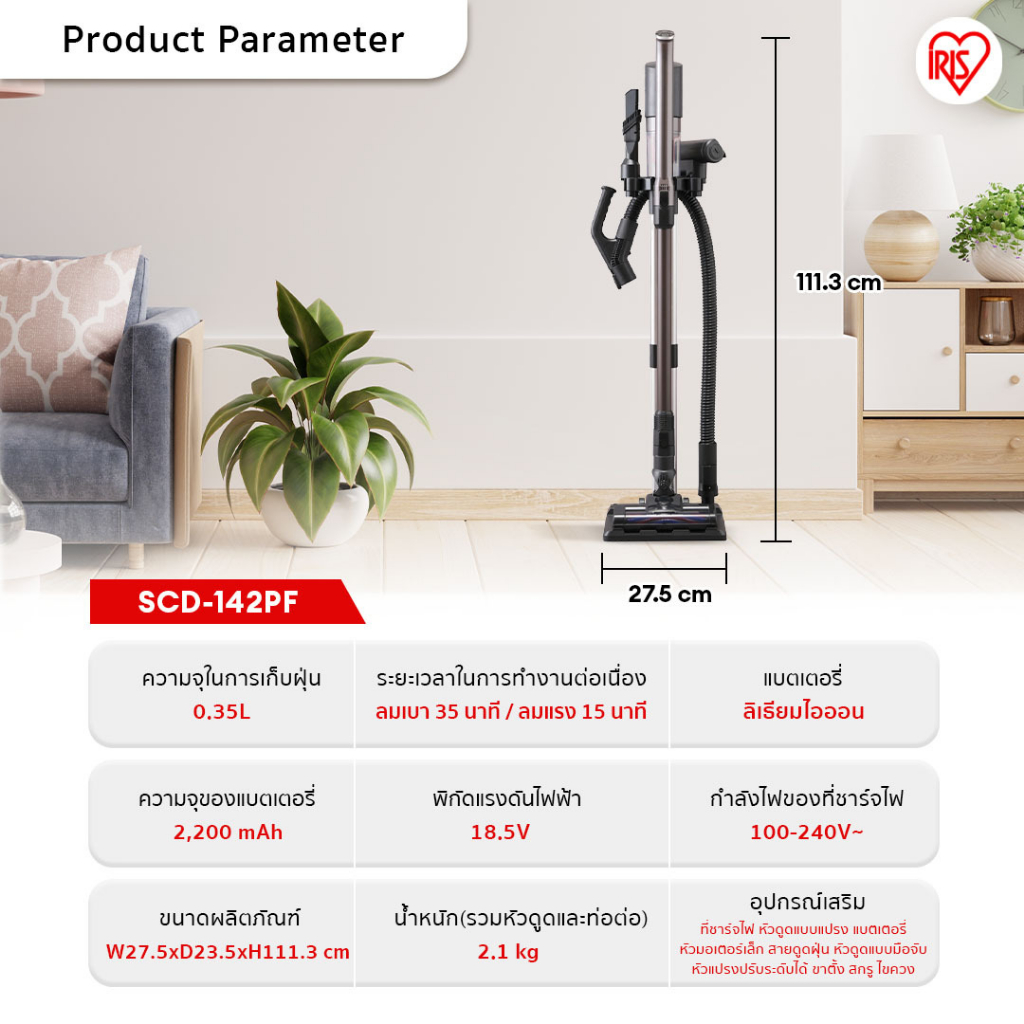 [2 Years warranty] IRIS OHYAMA ไอริส โอยามะ เครื่องดูดฝุ่น ไร้สาย ระบบไซโคลน ทรงพลัง รุ่น SCD-142PF