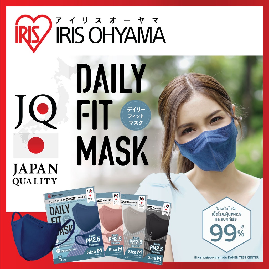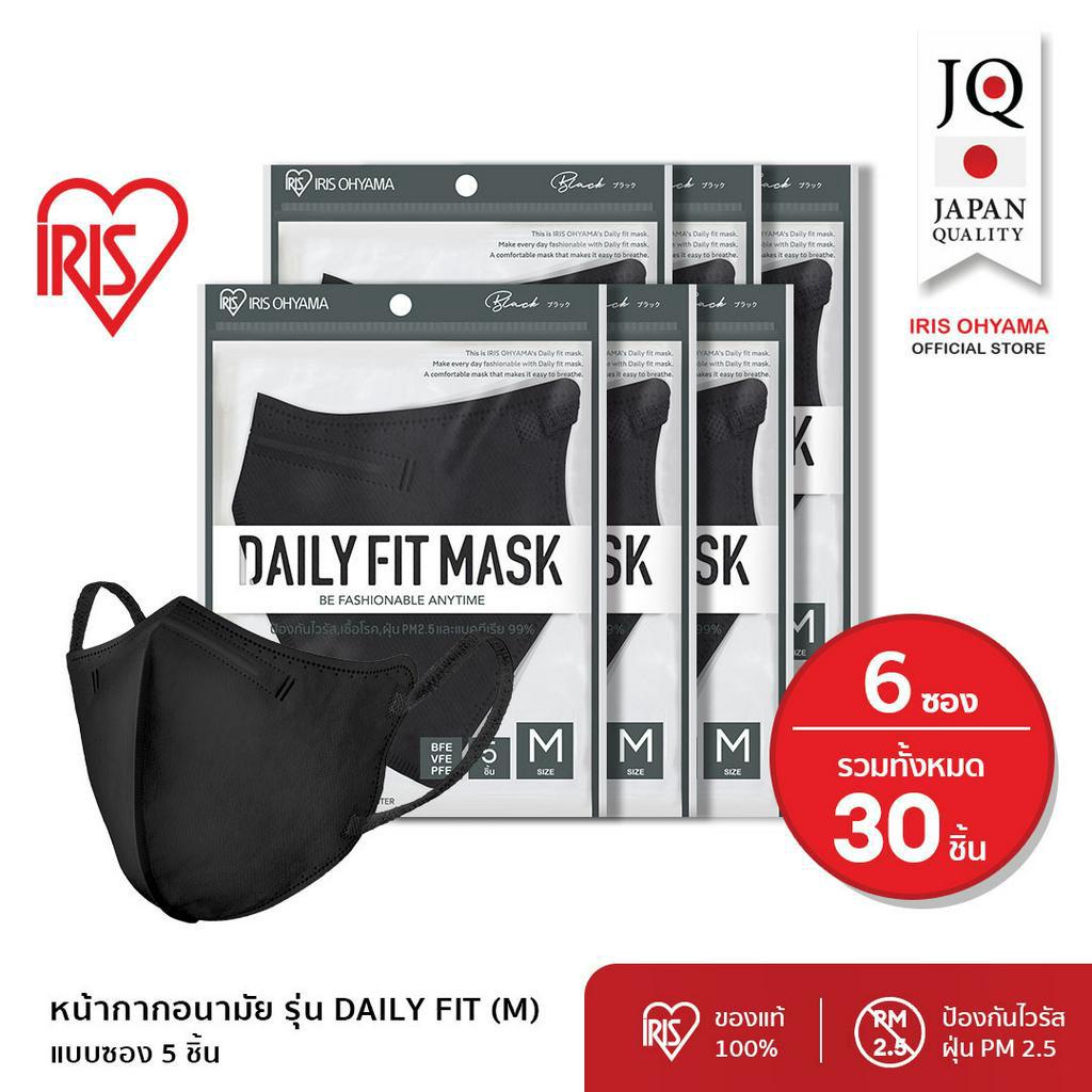 หน้ากากอนามัย ไอริส โอยามะ IRIS OHYAMA Daily fit สวมใส่สบาย กระชับใบหน้า ป้องกันไวรัส แบบซอง 5 ชิ้น แพ็ค 6 ซอง สีดำ