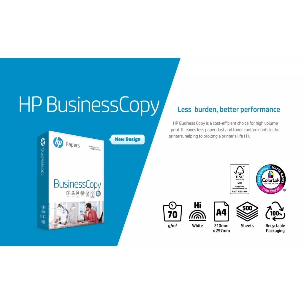 (5รีม) กระดาษถ่ายเอกสาร A4 ยี่ห้อ HP หนา 70แกรม (1รีม/500แผ่น) HP Business Copy Paper