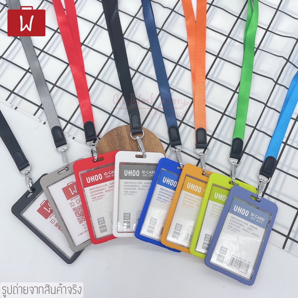 Oneworkstory ที่ใส่บัตรพนักงาน สายคล้อง |ใส2ด้าน QC✔️ กระจกอะคริลิค PP| สายห้อยคอ ซองใส่บัตรพนักงาน ที่ห้อยบัตร ID Card
