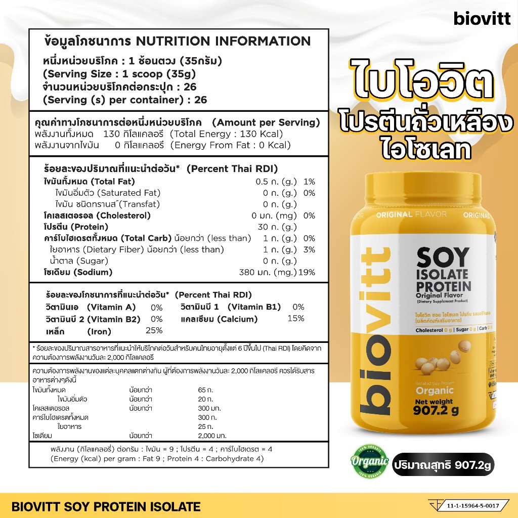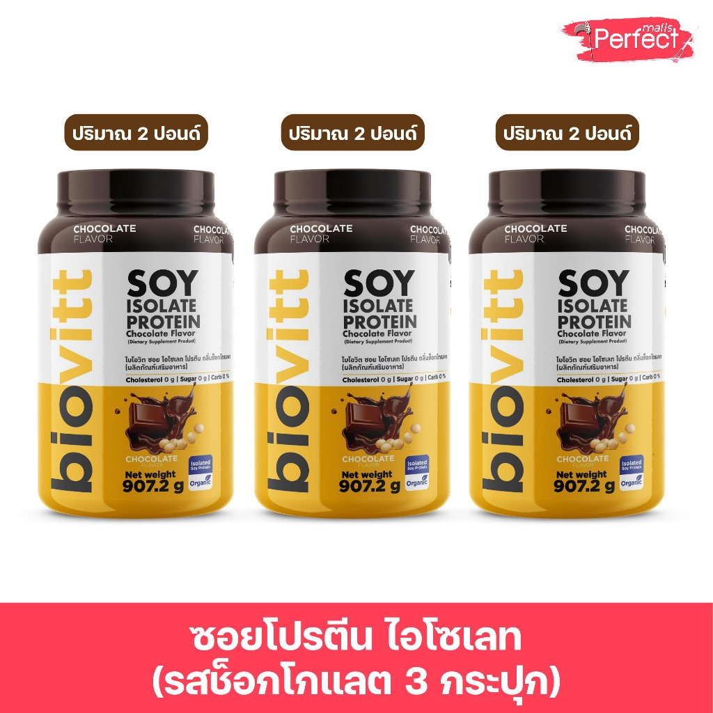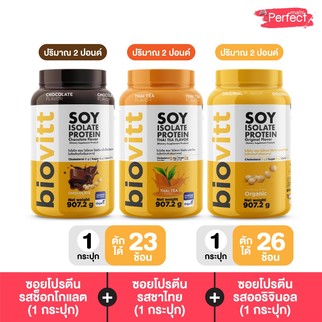 ⚡การันตีราคาดีที่สุด⚡|เจ้าเดียวจัดส่งฟรี| Biovitt Soy Protein ซอยโปรตีน ถั่วเหลืองออแกนิก 907.2กรัม ซอยโปรตีน มี 5รสชาติ