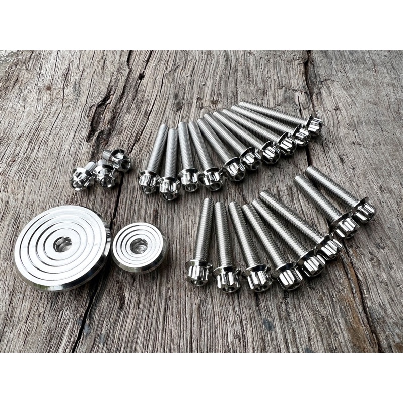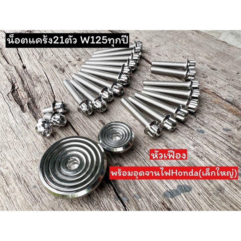น็อตแคร้งเครื่องW125ทุกปี21ตัว พร้อมอุดจานไฟก้นหอยชั้นลึก(กลึงมือ)หัวเฟือง(w125r/s w125iวาฬ w125iไฟเลี้ยวบังลม)