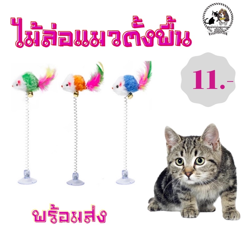 ไม้ล่อแมวแบบตั้งพื้น หนู/ขนไก่ 🐱