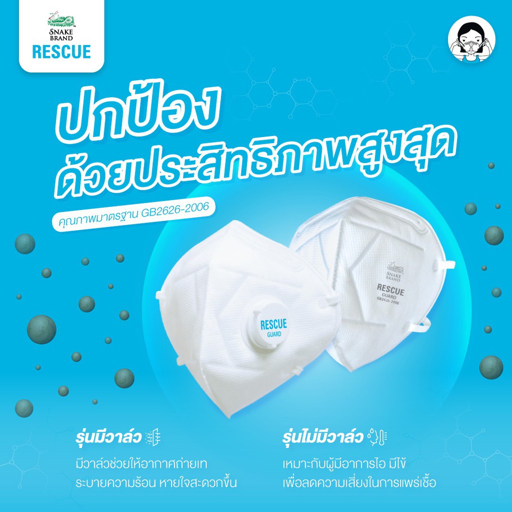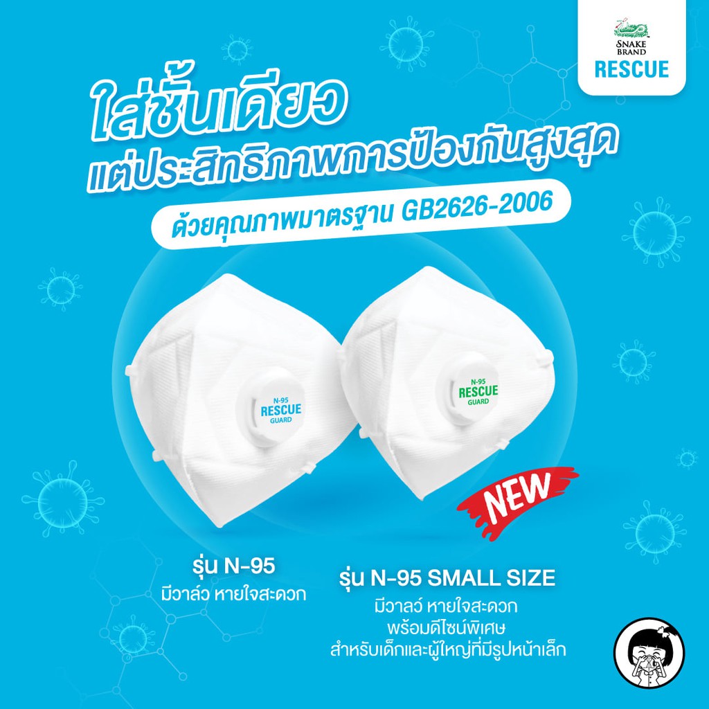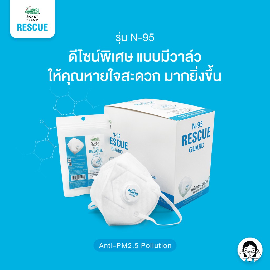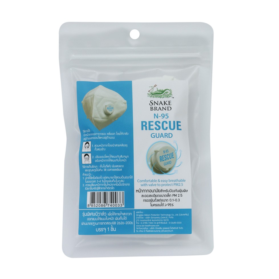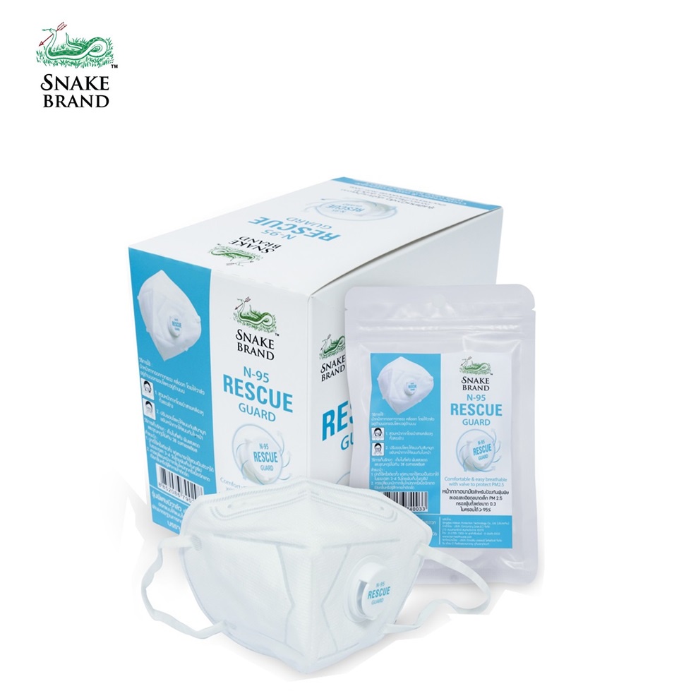 Snake Brand N95 Mask หน้ากากอนามัย ป้องกันฝุ่นพิษ PM 2.5 เอ็น 95 แพ็ค 12 ชิ้น/1กล่อง (Rescue Guard)