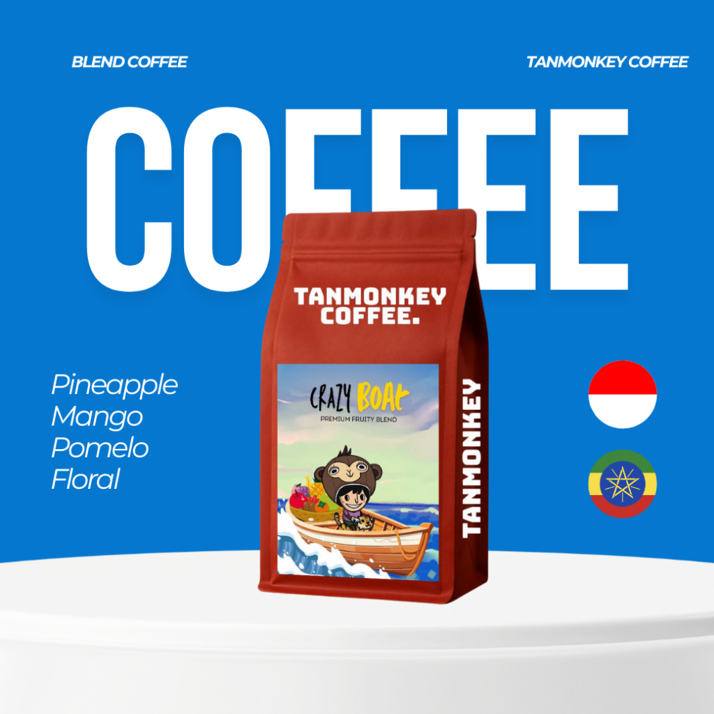 New! Tanmonkey Coffee เมล็ดกาแฟคั่ว Crazy Boat Premium Fruity Blend 200g