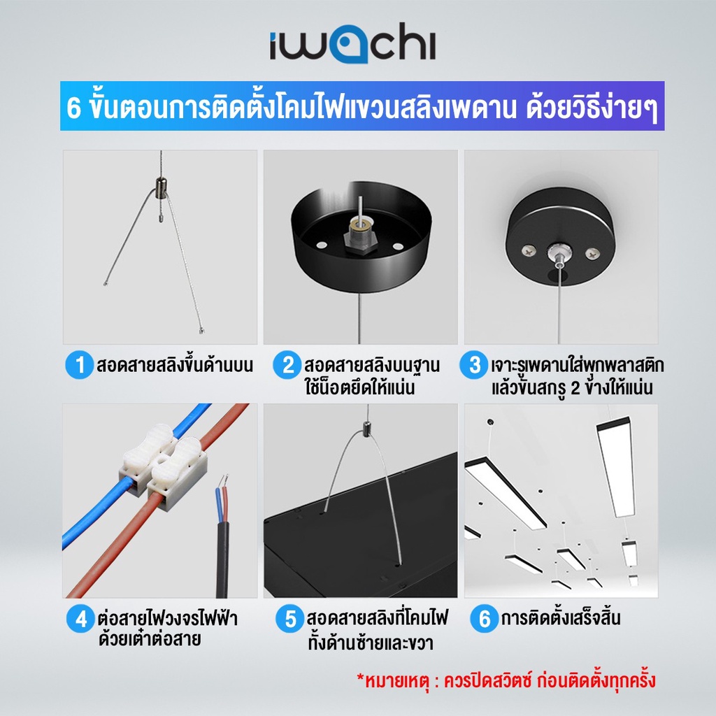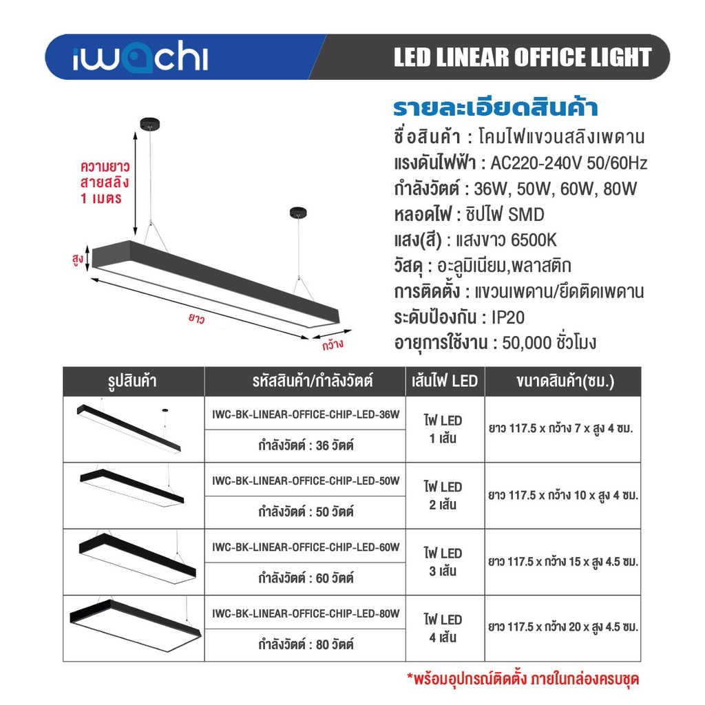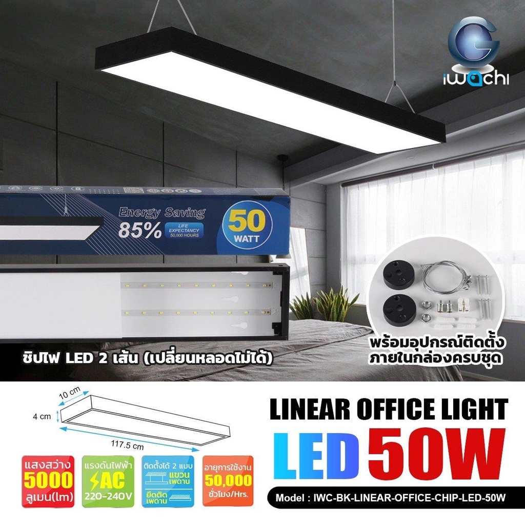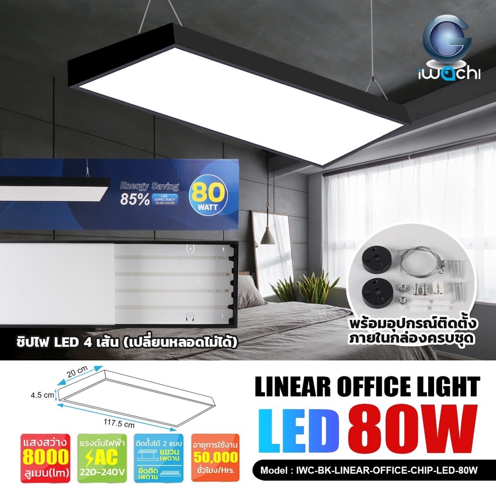 โคมไฟออฟฟิต "รุ่นนี้เปลี่ยนหลอดไม่ได้"โคมไฟแขวนสลิงเพดาน แขวนเพดาน/ยึดติดเพดาน 36W 50W 60W 80W