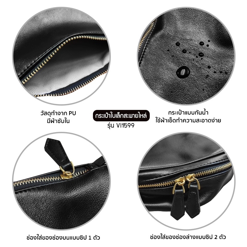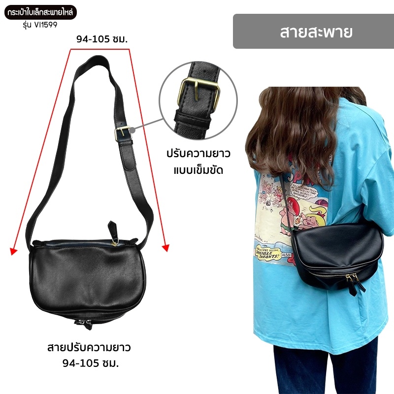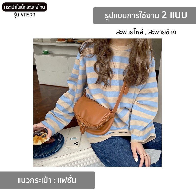 กระเป๋าใบเล็กสะพายไหล่ รุ่น VI1599 กระเป๋าสำหรับผู้หญิง Crossbody หนัง PU ช่องซิปใส่ของ 2 ช่อง มีสีดำ ครีม น้ำตาล
