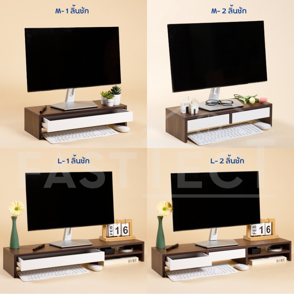 FASTTECT ชั้นวางจอคอม 2 ลิ้นชัก - ลดการก้มให้เมื่อยคอ พร้อมที่เก็บคีย์บอร์ด และลิ้นชัก