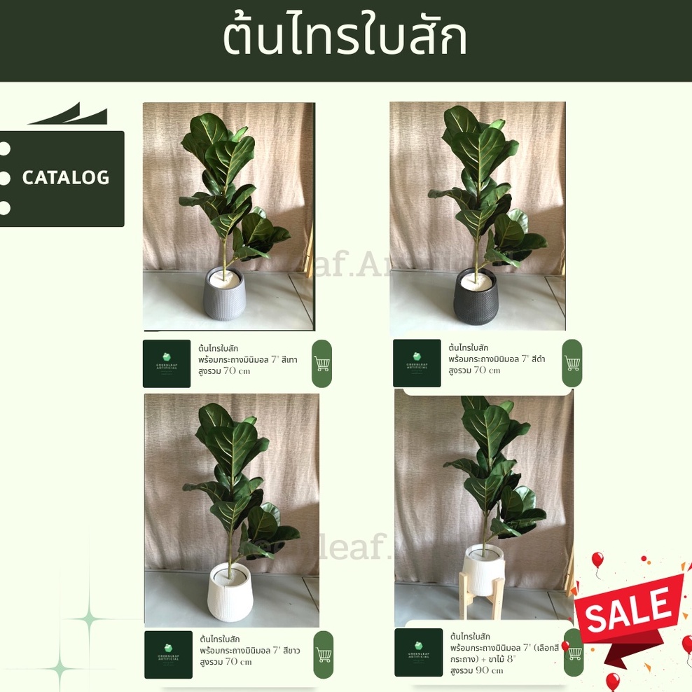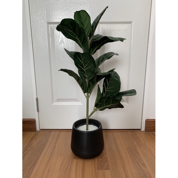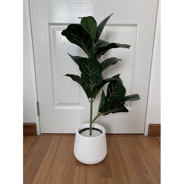 ต้นไทรใบสักปลอม70cm ต้นไทรใบสักพร้อมกระถางดำ5"หล่อปูน ส่งไว