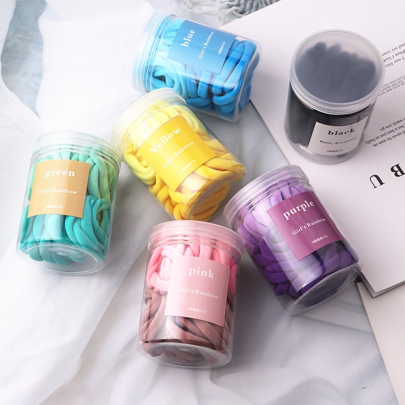 [พร้อมส่ง]ยางมัดผมกระปุกละ 50 เส้น ยางมัดผมหลากสี ยางมัดผมสไตล์เกาหลีสีพาสเทล ยางมัดผมแฟชั่น