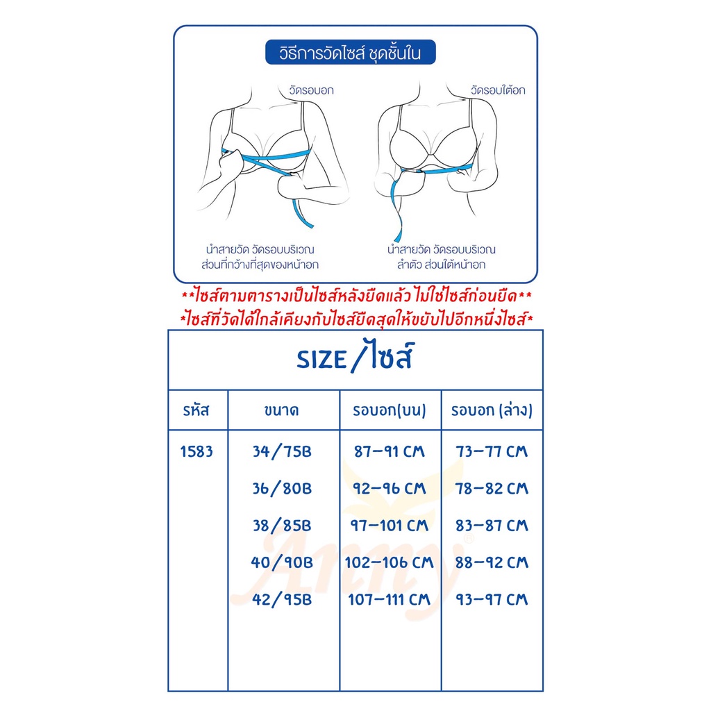 ชุดชั้น ใน Anny รุ่น1583 คัพB เสื้อใน 3ตะขอ บรามีโครง เด็มทรง ฟองน้ำบาง4mm. ยกกะชับอก ทรงสวย เก็บข้างดี ส่วมใส่สบาย