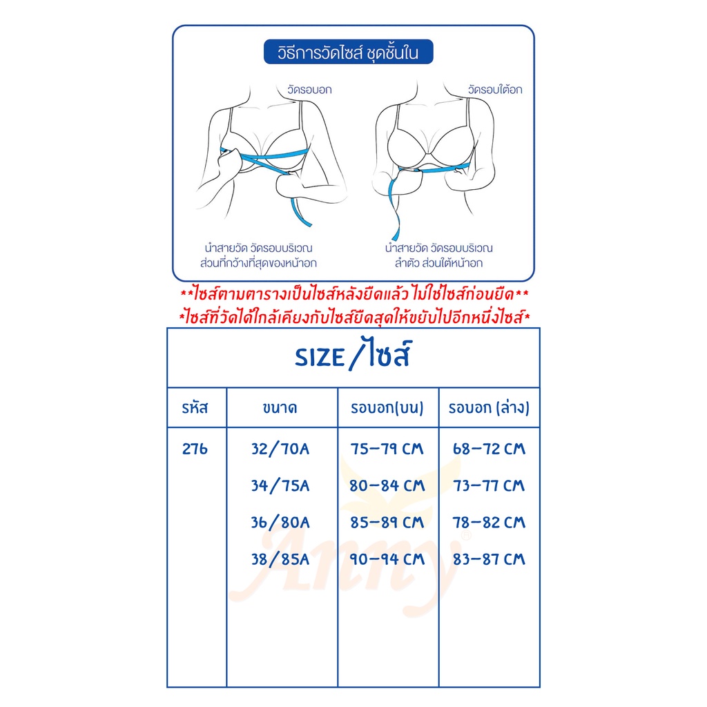 ชุดชั้นใน Anny รุ่น276 คัพA เสื้อใน 2ตะขอ บราไร้โครง ทรงเล็กเต็มทรง ฟองน้ำบาง4mm ใส่สวยอย่างเป็นธรรมชาติ สวมใส่สบาย