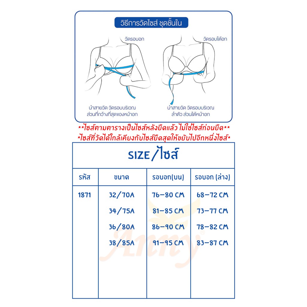 ชุดชั้นใน Anny รุ่น1871 คัพA เสื้อใน บราไร้โครง เต็มทรง ฟองน้ำนุ่มบาง 4mm ใส่สบาย มี 2ตะขอ ปรับได้ 3ระดับ ถอดไม่ได