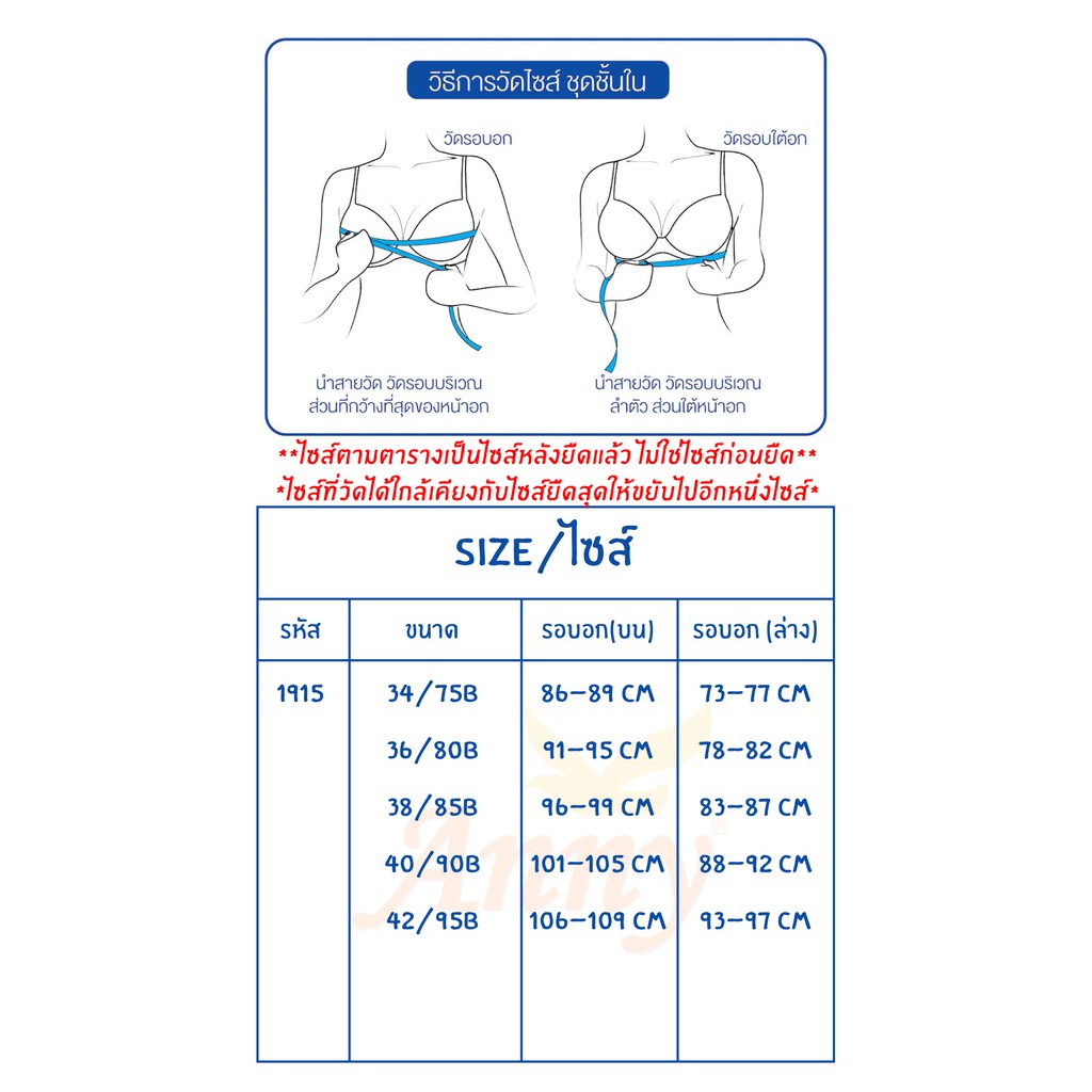 ชุดชั้น ใน Anny รุ่น1915 คัพB เสื้อใน บรามีโครง ฟองบางเฉียบ2mm มี 2ตะขอ ปรับได้3ระดับ
