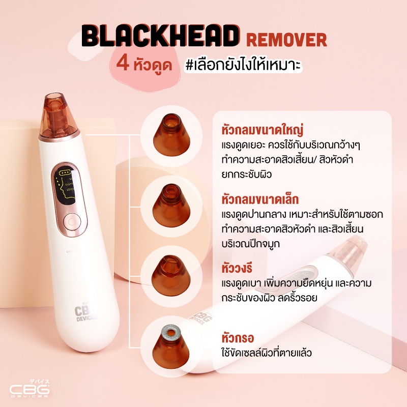 CBG Devices Blackhead Remover เครื่องดูดสิวเสี้ยนอเนกประสงค์ (BHR) ดูดสิวเสี้ยนได้อย่างมีประสิทธิภาพ พร้อมหัวดูด4ขนาด