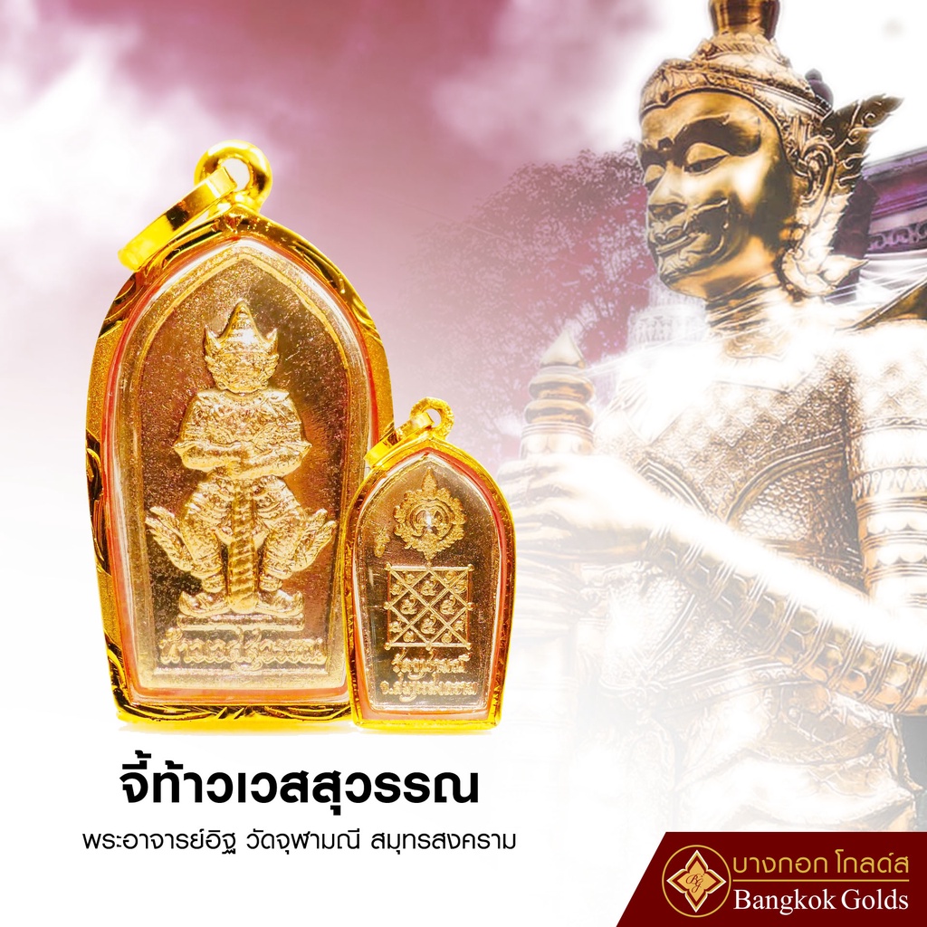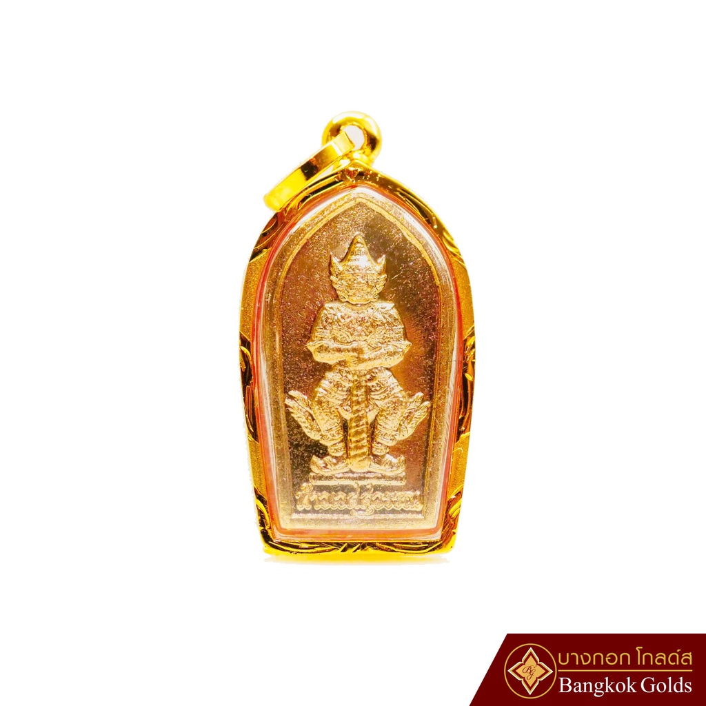 BangkokGolds จี้ ท้าวเวสสุวรรณ (องค์สีทอง) วัดจุฬามณี จ.สมุทรสงคราม เลี่ยมกรอบทองแท้ 75% *ของแท้*