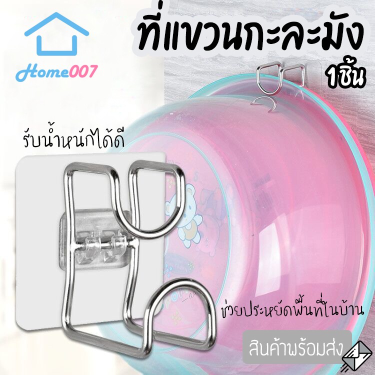 Home007 ที่แขวนกะละมัง ที่แขวนอเนกประสงค์ ตะขอแขวนของเอนกประสงค์ แบบติดผนัง ไม่ต้องเจาะ ประหยัดพื้นที่ รับน้ำหนักได้เยอะ