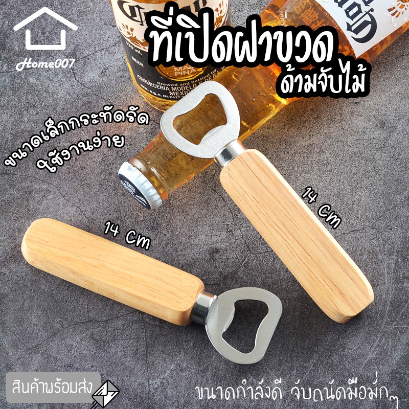 Home007 ที่เปิดฝาขวด ที่เปิดขวด ด้ามจับไม้ ที่เปิดฝาขวดน้ำอัดลม เกรดพรีเมี่ยม ที่เปิดขวดฝากลม สแตนเลส