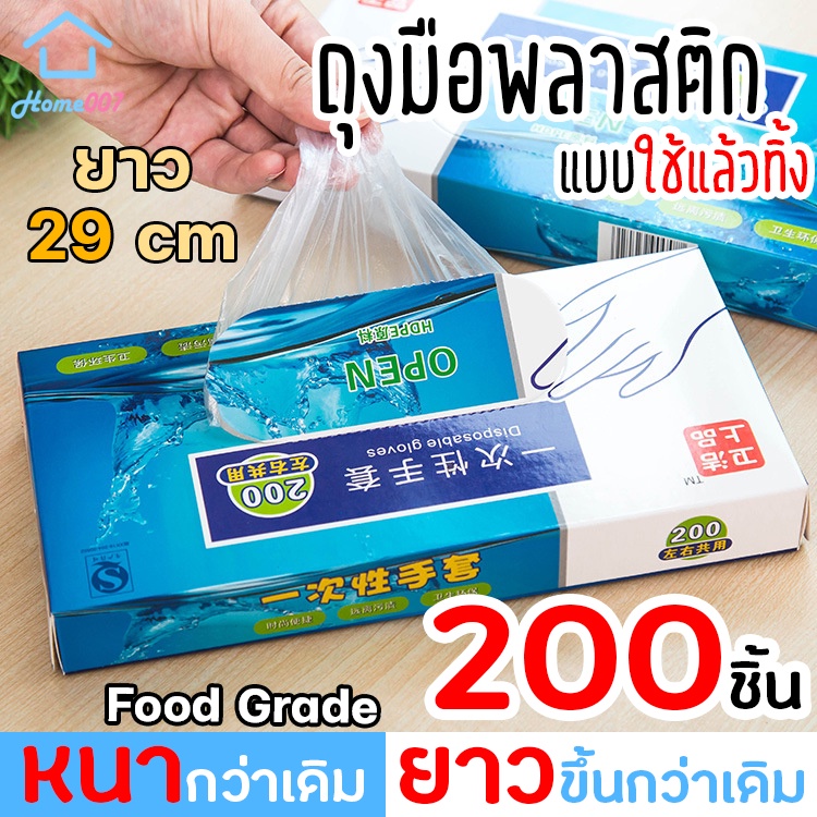 Home007 ถุงมือพลาสติก แบบใช้แล้วทิ้ง 1 กล่อง 200 ชิ้น ถุงมือพลาสติกใส ฟู้ดเกรด สำหรับทำอาหาร ถุงมือทำอาหาร