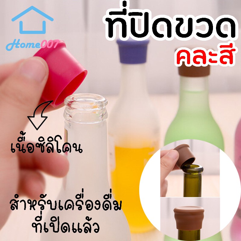 Home007 *คละสี* ที่ปิดขวด ฝาขวดซิลิโคน ที่ปิดฝาขวด ฝาซิลิโคน ฝาจุกซิลิโคนปิดขวด สำหรับเครื่องดื่มที่เปิดแล้ว