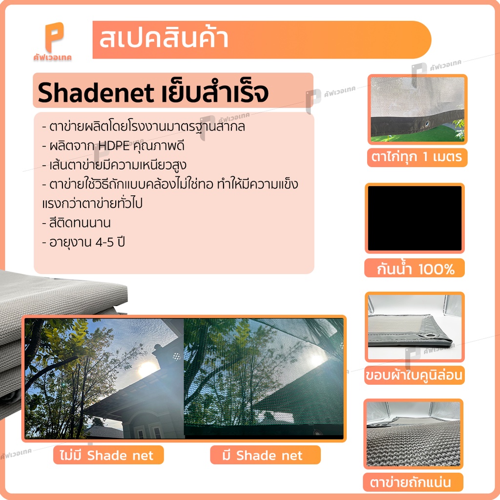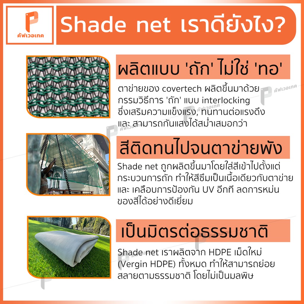ตาข่ายกรองแสงShade net รุ่น Standard ตาไก่ทุกครึ่งเมตร ตาข่ายพลางแสง สแลนกันแดด Covertech