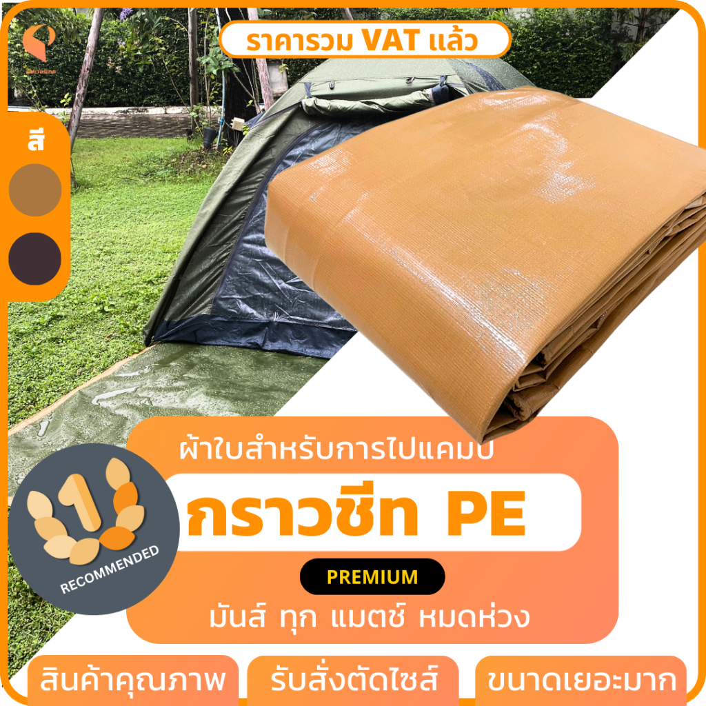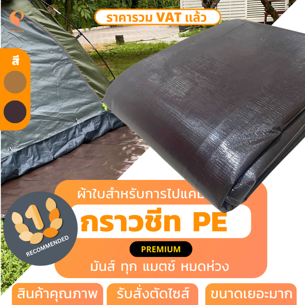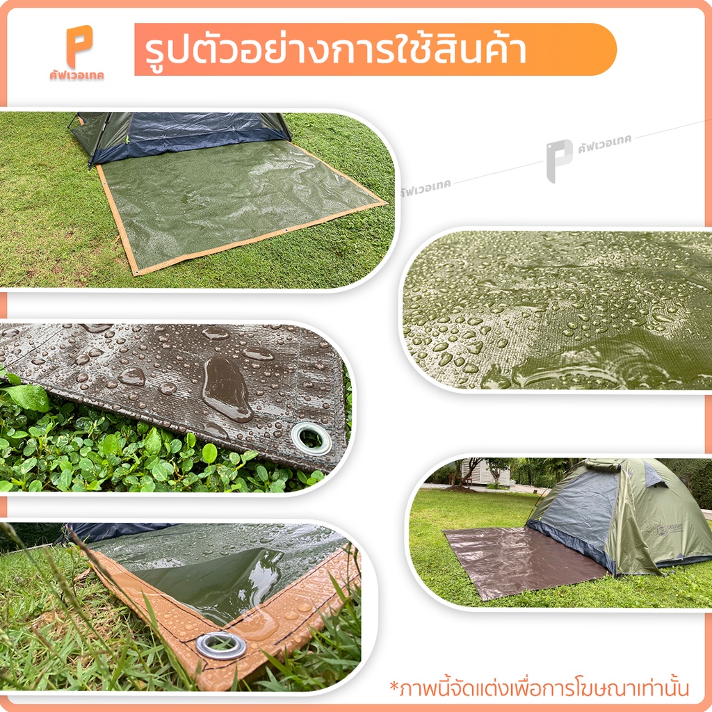 กราวชีทPE Tarpaulin รุ่นPremium ตาไก่รอบผืน รองพื้นเต๊นท์ กันน้ำซึม Covertech