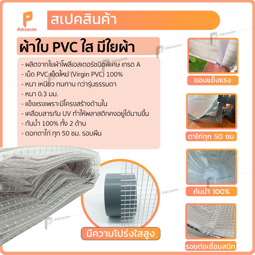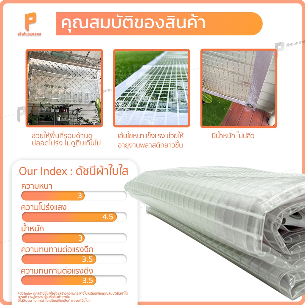 ผ้าใบใสกันฝนPVC ใสมีใยผ้า รุ่น Standard ตาไก่ทุกครึ่งเมตร ผ้าใบใสแบบหนา Covertech
