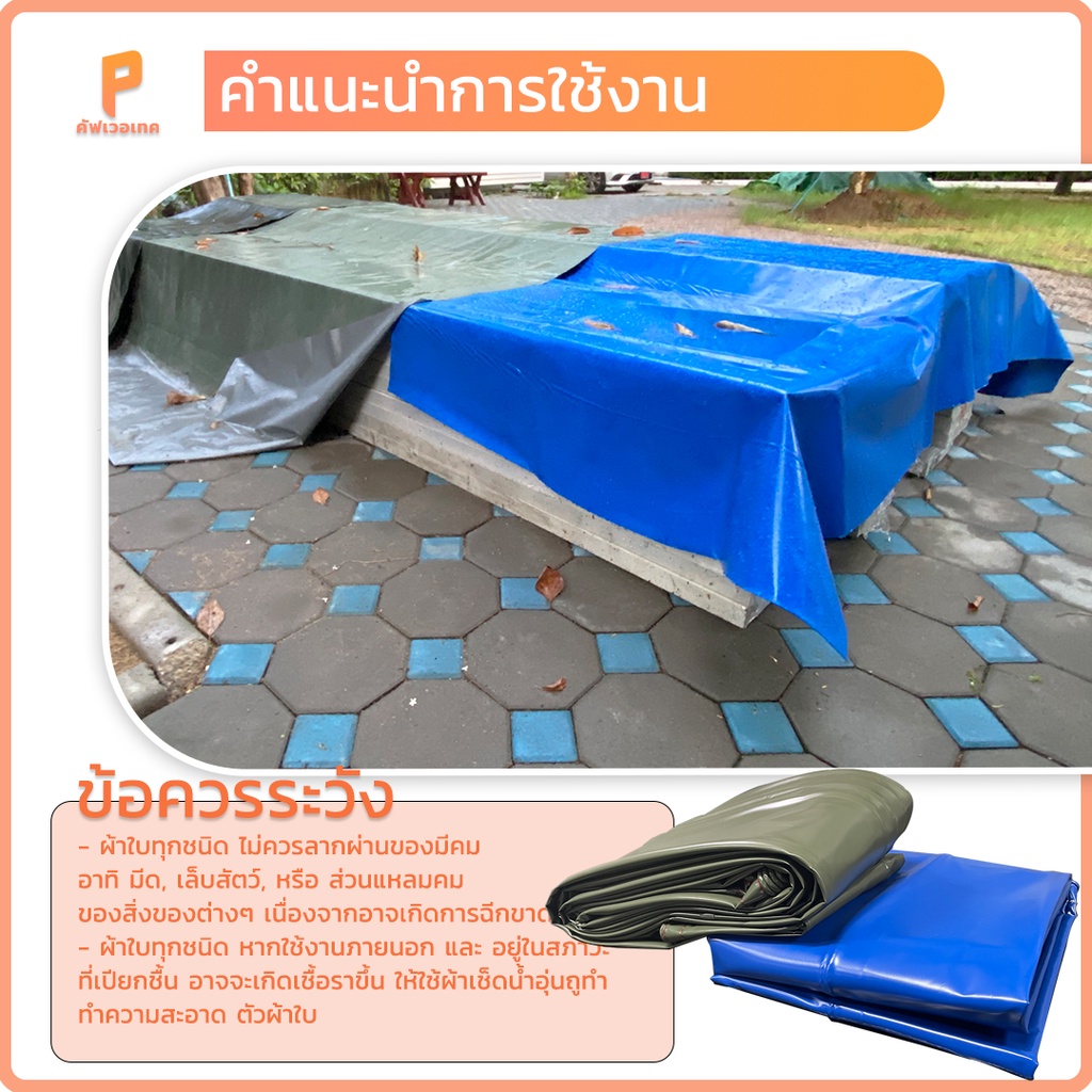ผ้าใบกั นแดดกันฝนPVC ชีท รุ่น Standard ตาไก่ทุกเมตร ผ้าใบคลุมของ คลุมสินค้า Covertech