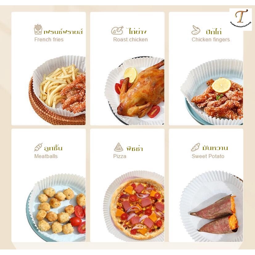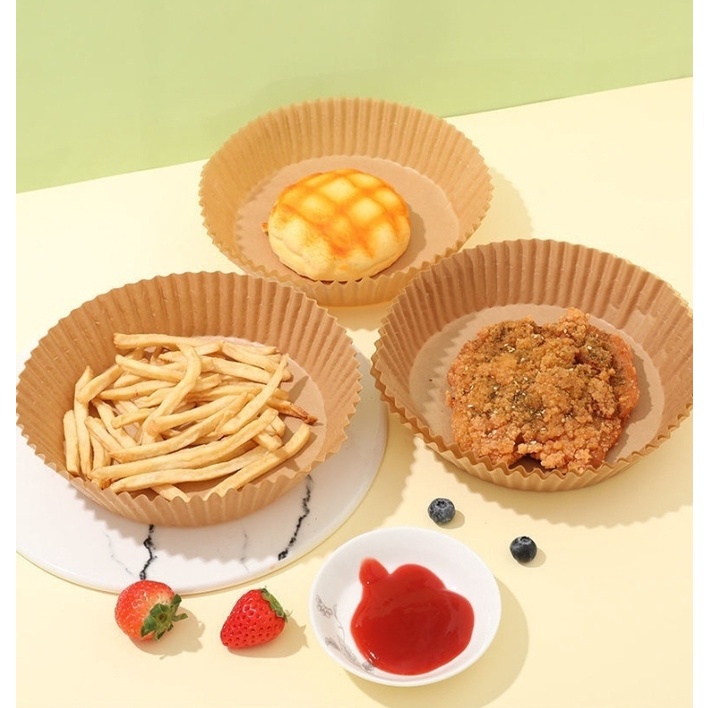 กระดาษรองหม้อทอดไร้น้ำมัน ทรงกลม สีน้ำตาลธรรมชาติ (Wood) แบบใช้แล้วทิ้ง สําหรับหม้อทอดไร้น้ำมัน
