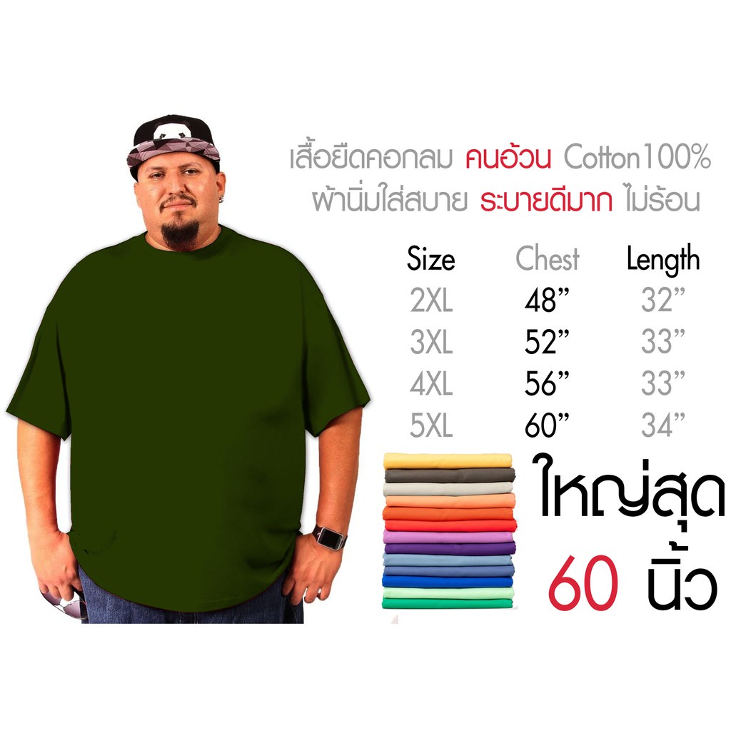 เสื้อไซส์ใหญ่ พิเศษ!!!!! เสื้อยืด คนอ้วน คอกลม เนื้อนุ่ม ใส่สบาย คอตตอน 100% ใหญ่สุด 60 นิ้ว เสื้อระบายความร้อนได้ดี