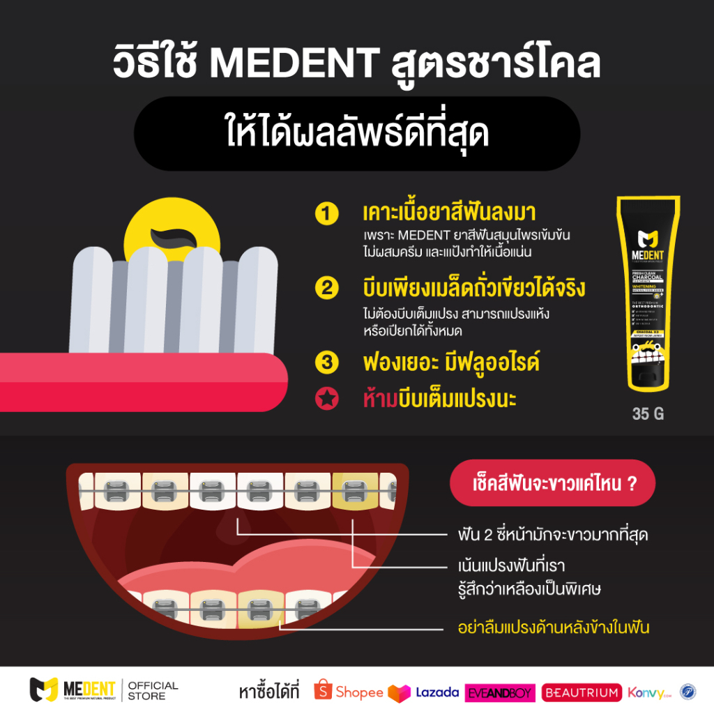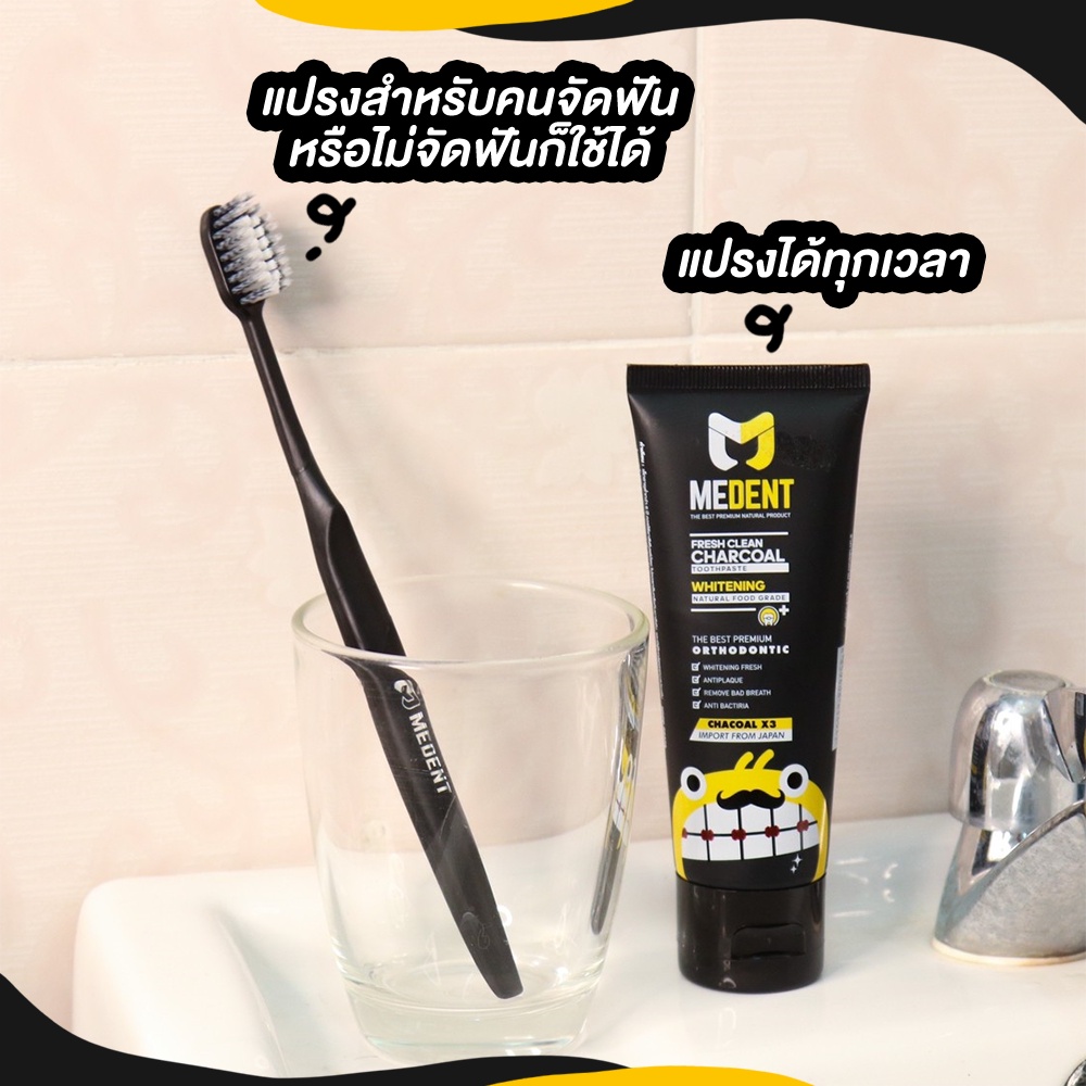 🔥 MEDENT (มีเด้นท์) Charcoal ⭐️ ยาสีฟันสำหรับคนจัดฟัน ขนาดกลาง 35g ฟอกฟัน ฟันขาว ขูดหินปูน ฟอกฟันขาว