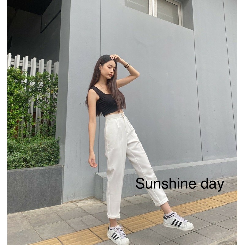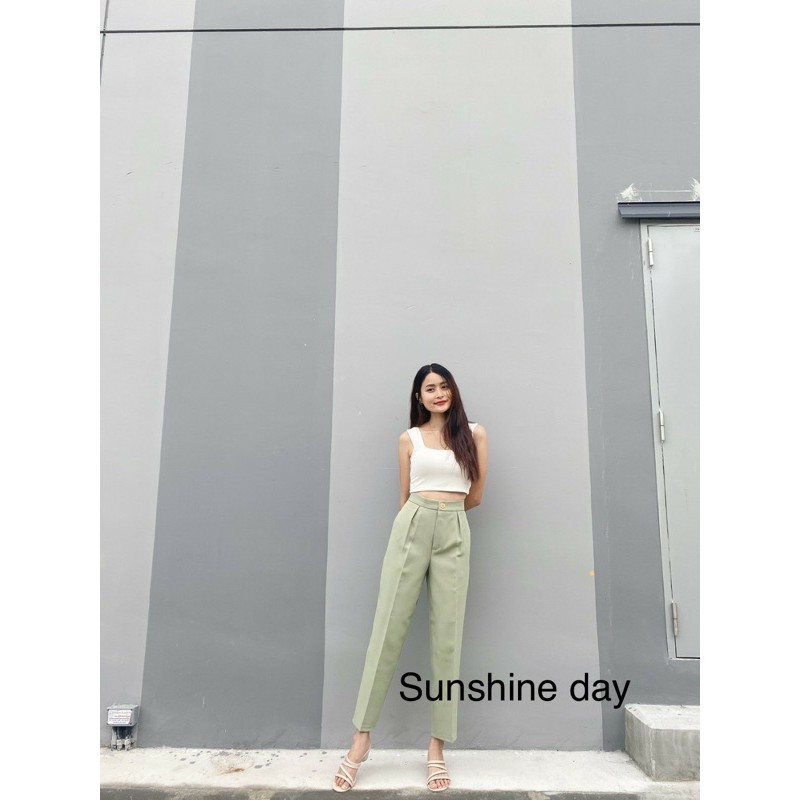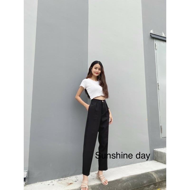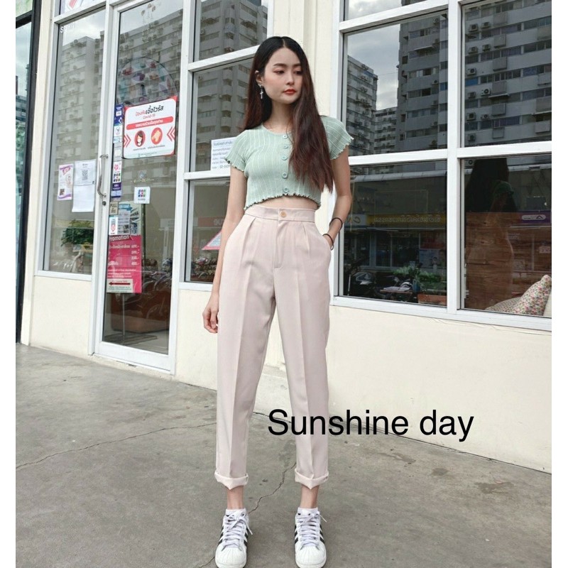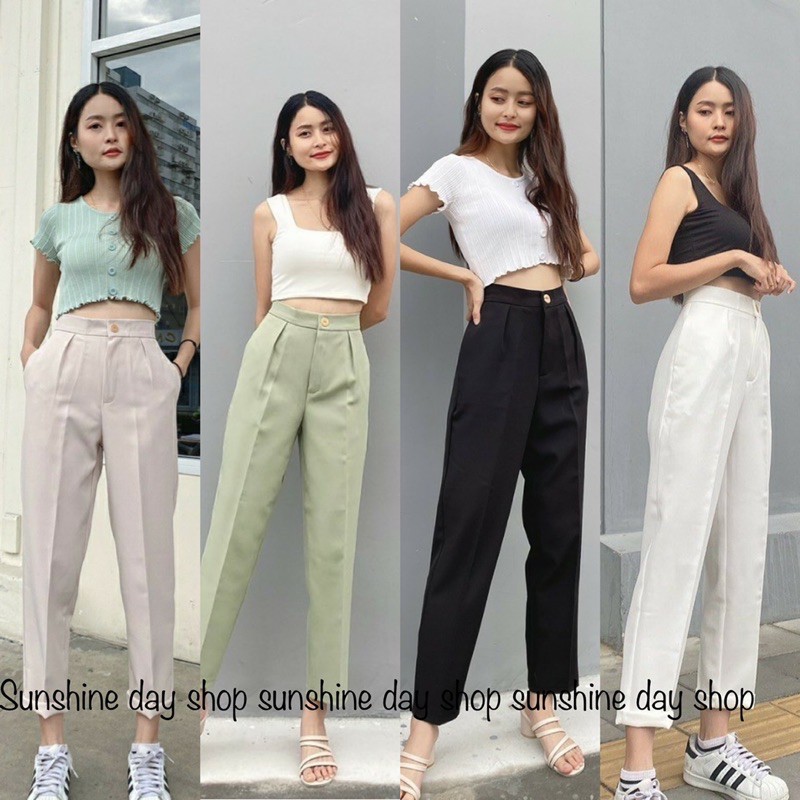 😻กางเกง 9 ส่วน สไตล์วินเทจ เอวสูงผ้าไม่ยืด กระดุมไม้ แต่งจีบหน้า ใส่เที่ยว ใส่ทำงาน ตัวเดียวจบ บอกเลยต้องมีติดตู้👌👌