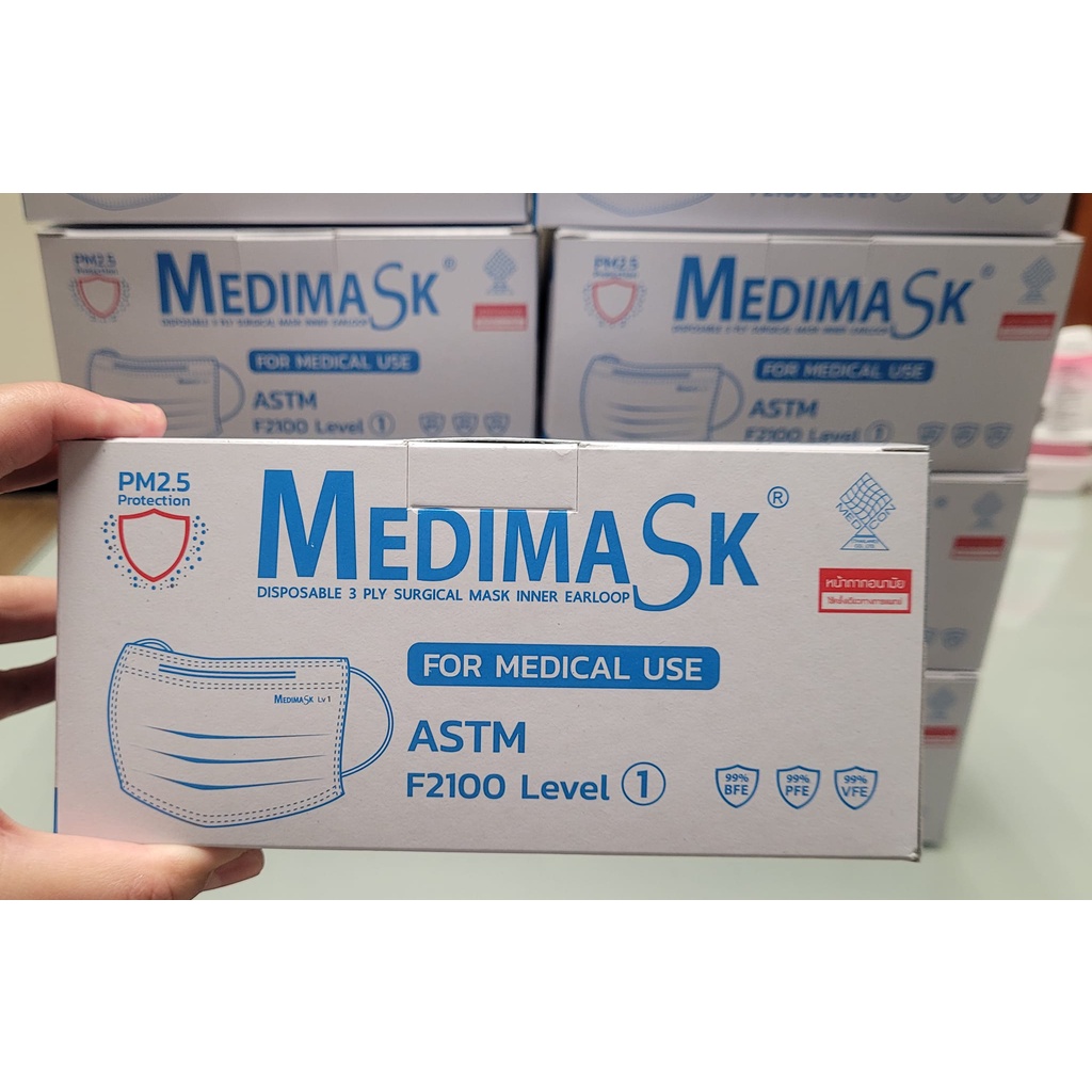 MEDIMASK หน้ากากอนามัยทางการแพทย์ ผลิตไทย🇹🇭 “ 1แพ๊ค/50ชิ้น”