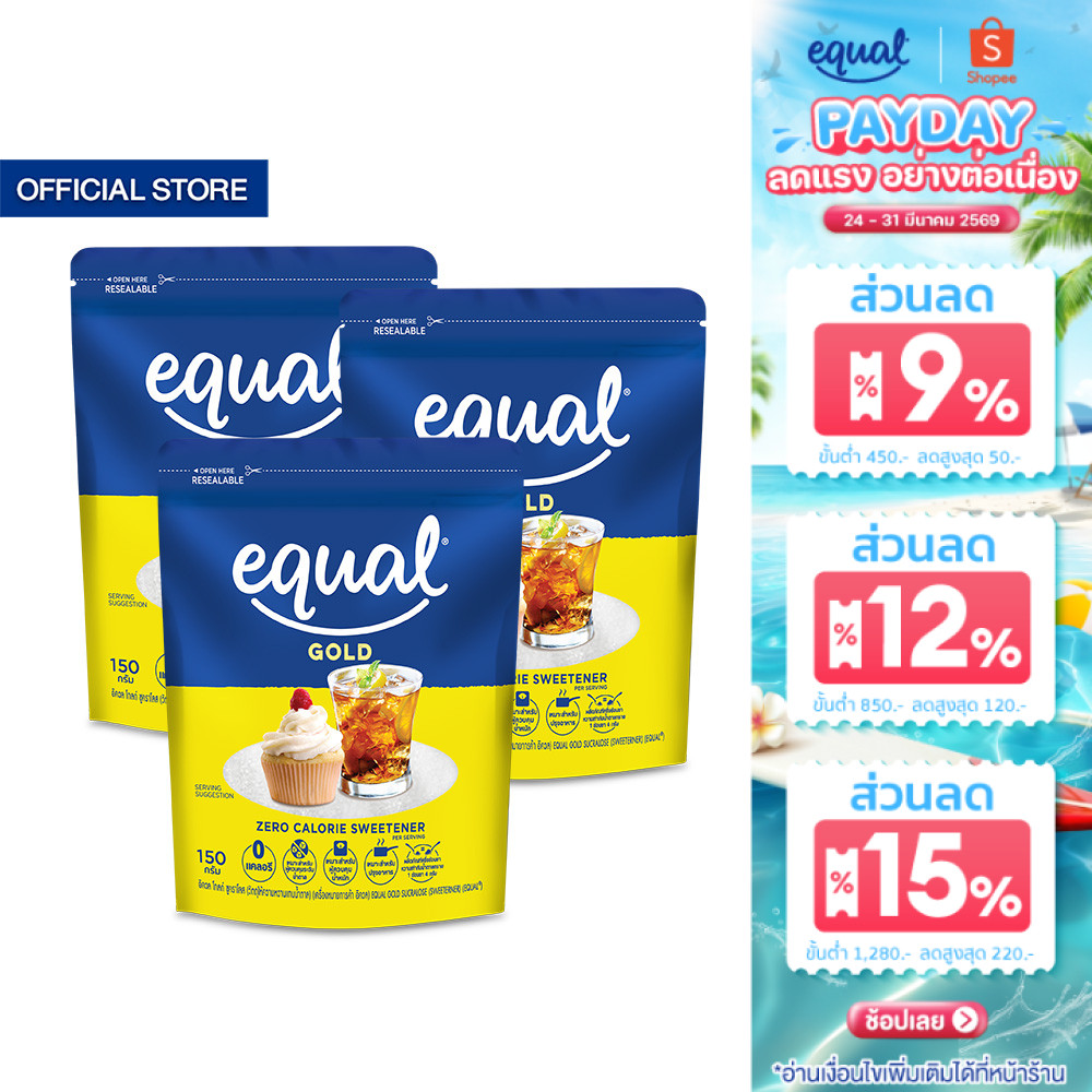 [3 ถุง] Equal Gold อิควล โกลด์ ผลิตภัณฑ์ให้ความหวานแทนน้ำตาล ขนาด 150 กรัม 0 แคลอรี