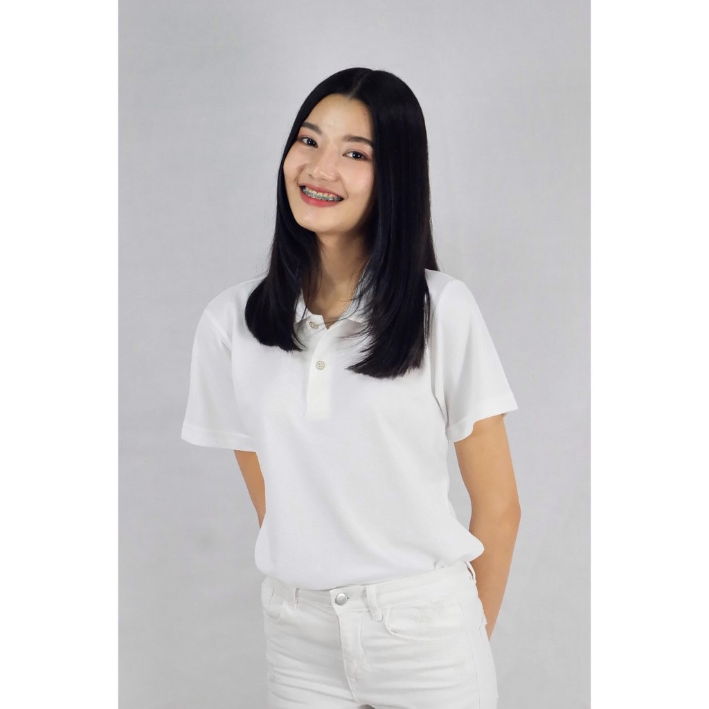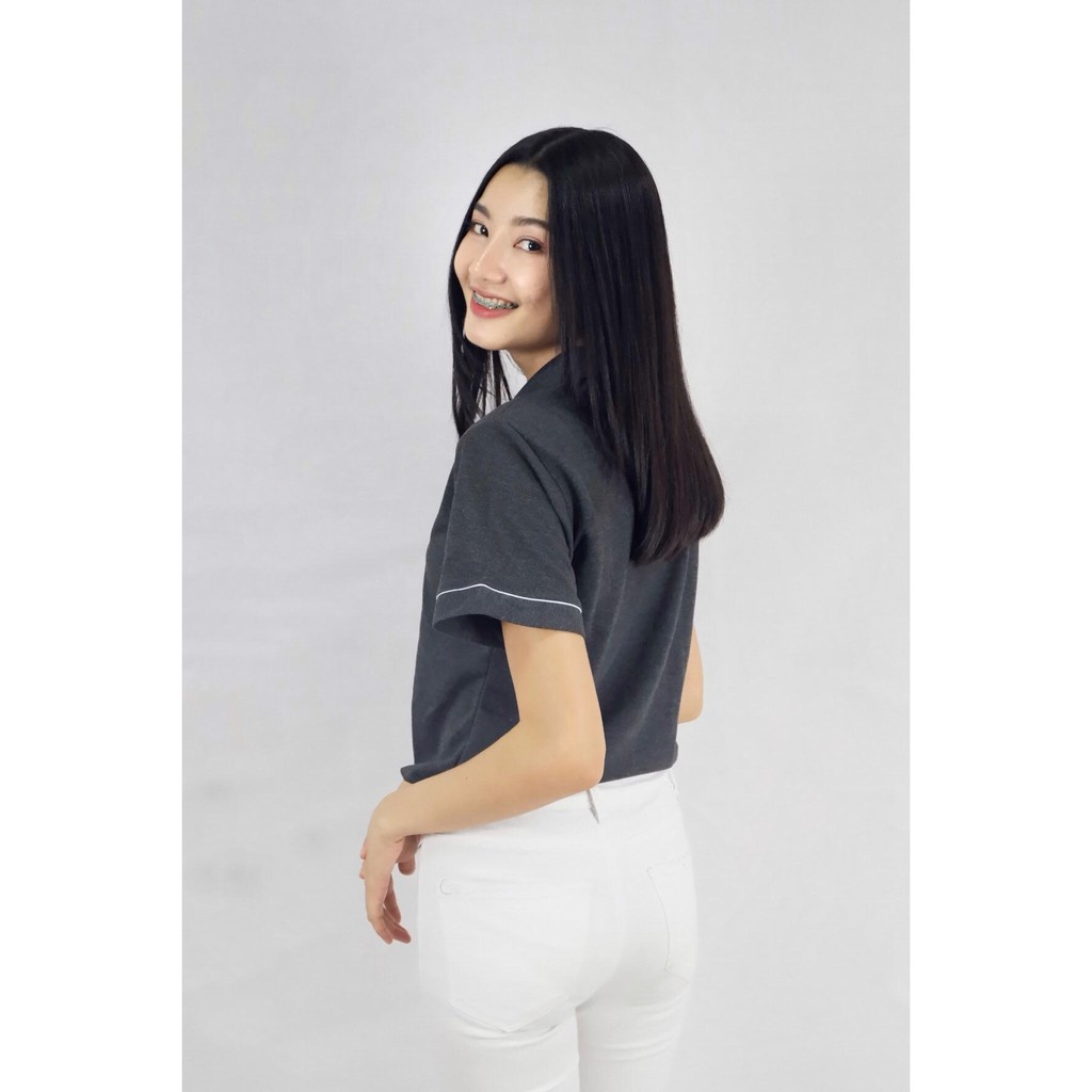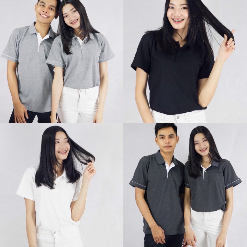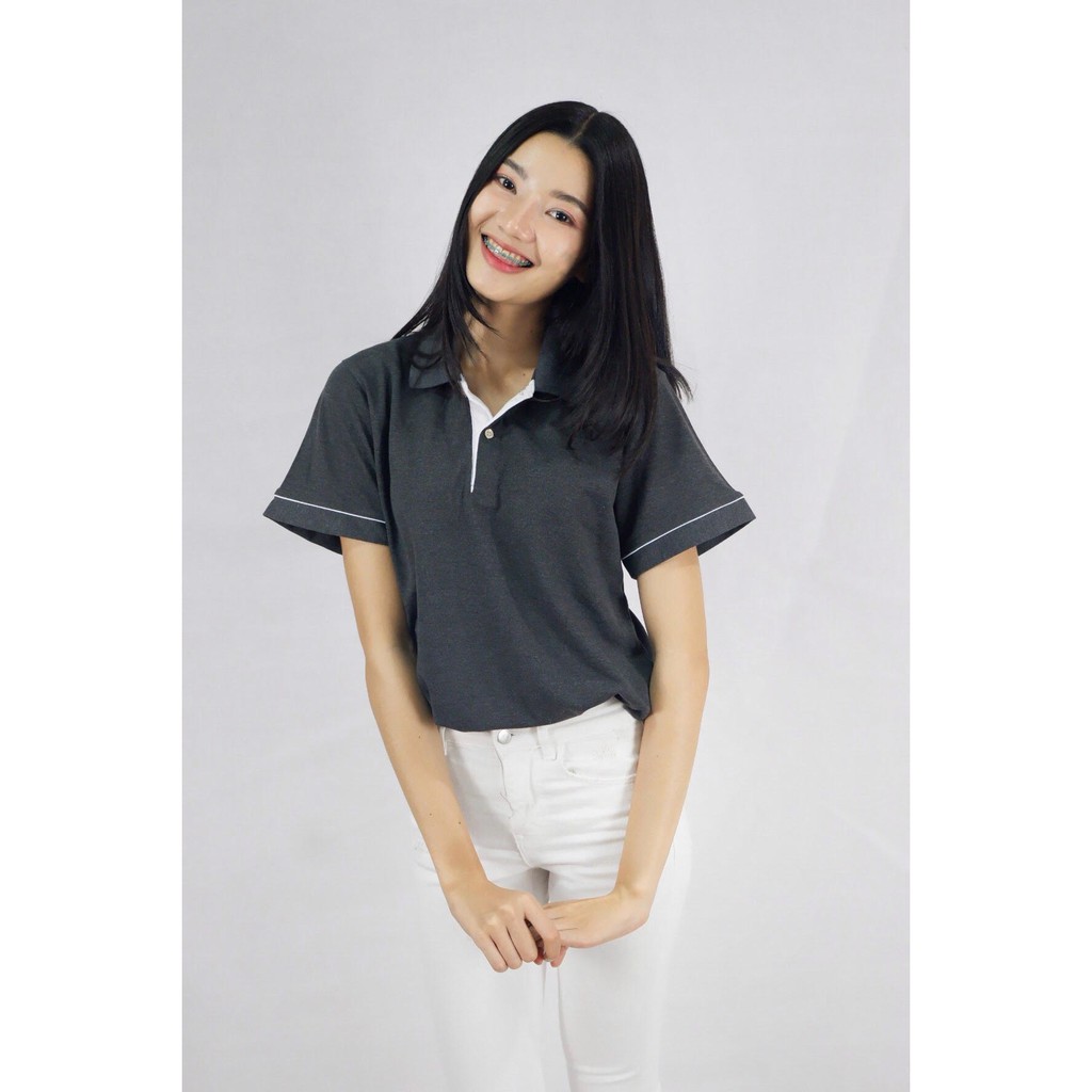 เสื้อโปโลผู้หญิงเข้ารูป ผ้าTKผสมโพลีเอสเตอร์ โทนขาวดำเทา สีพื้น (4สี มีไซส์ให้เลือก) พร้อมส่ง