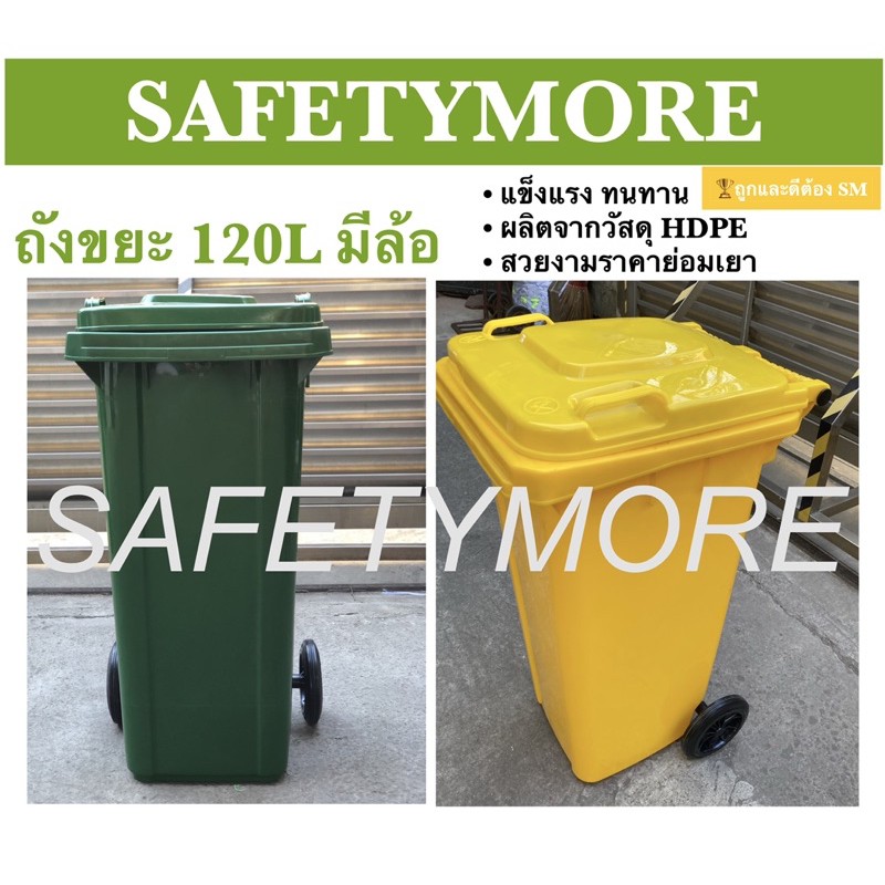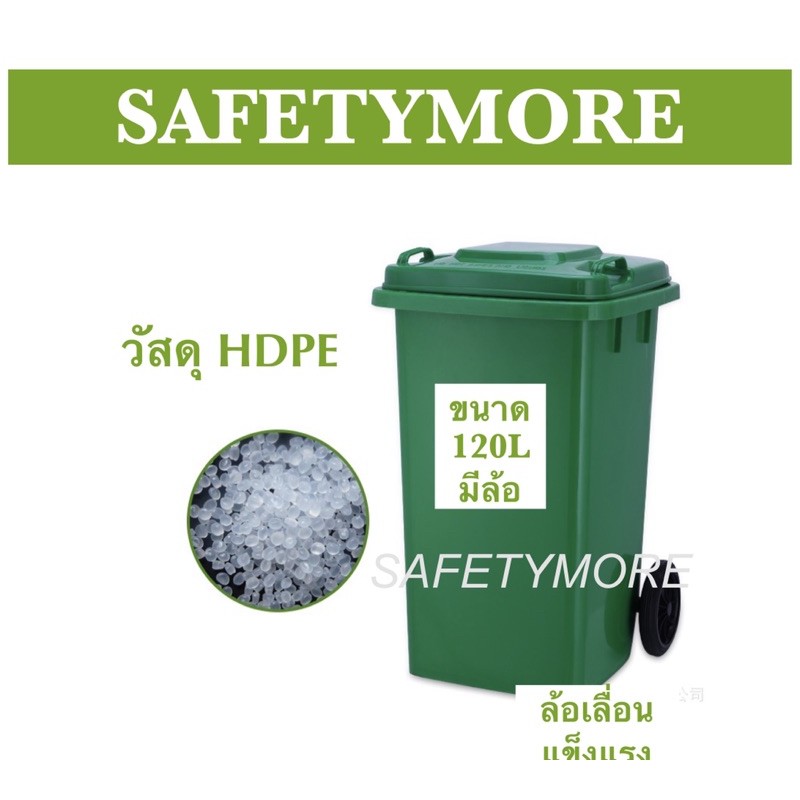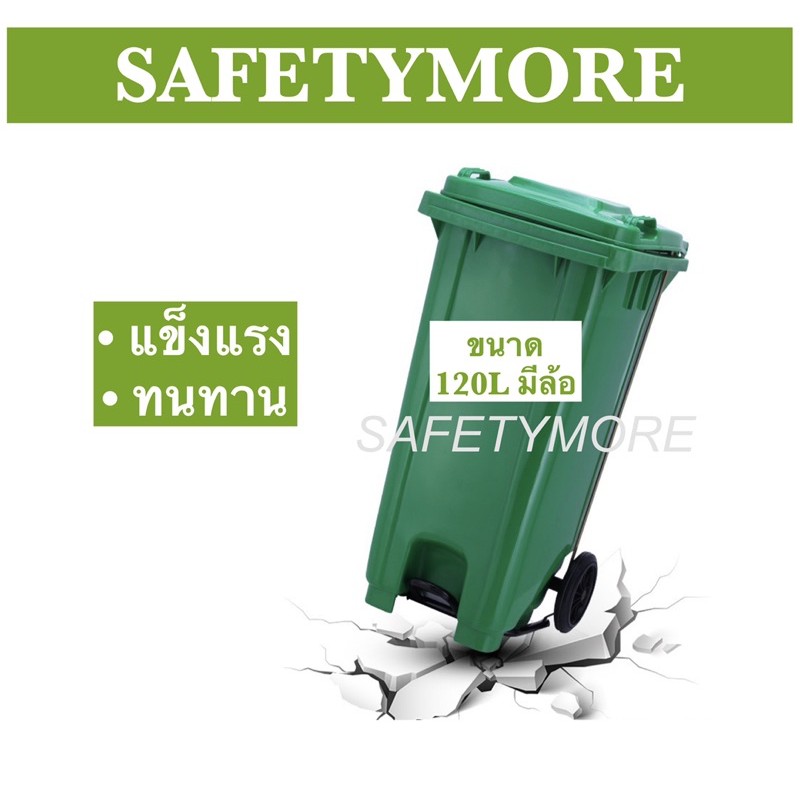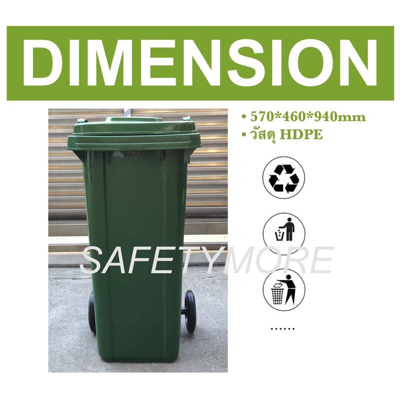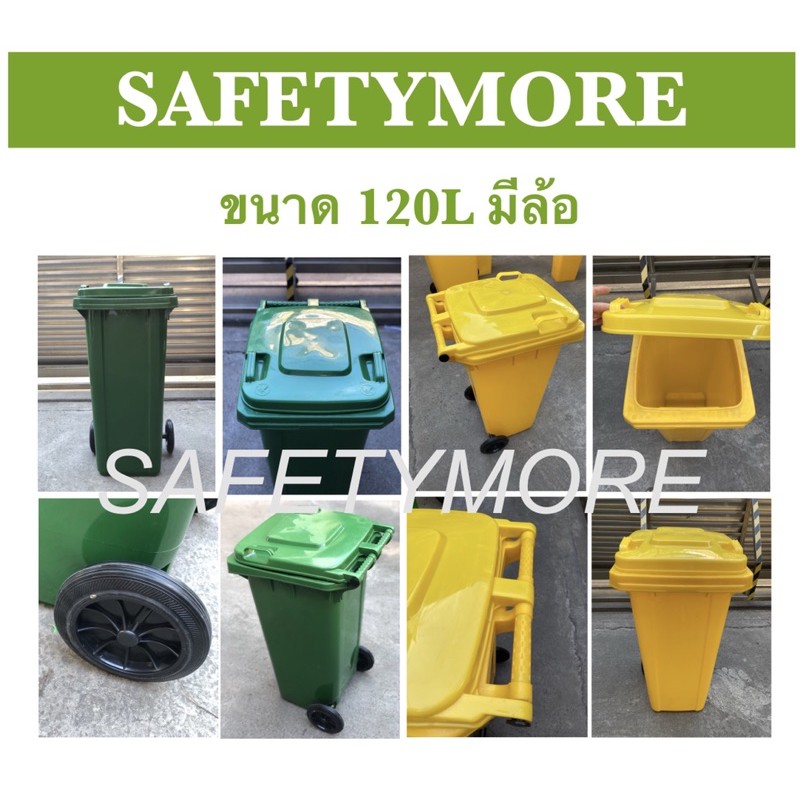 ถังขยะ ถังขยะกทม 120ลิตร มีล้อ HDPE ฝาเปิด สีเขียว เหลือง น้ำเงิน แดง คุณภาพดี ทนทาน สวยงาม